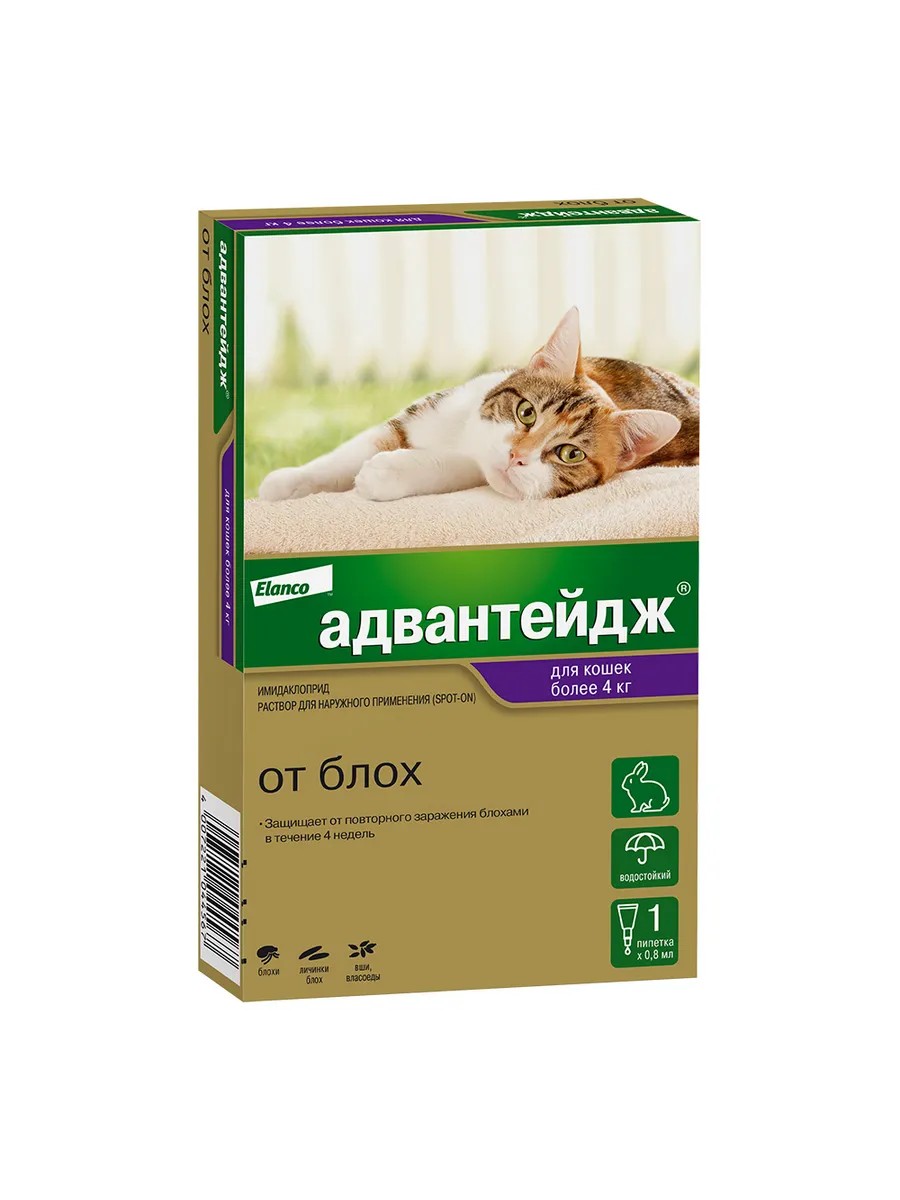 Elanco Капли Адвантейдж 80 К для кошек больше 4 кг 1 пипетка