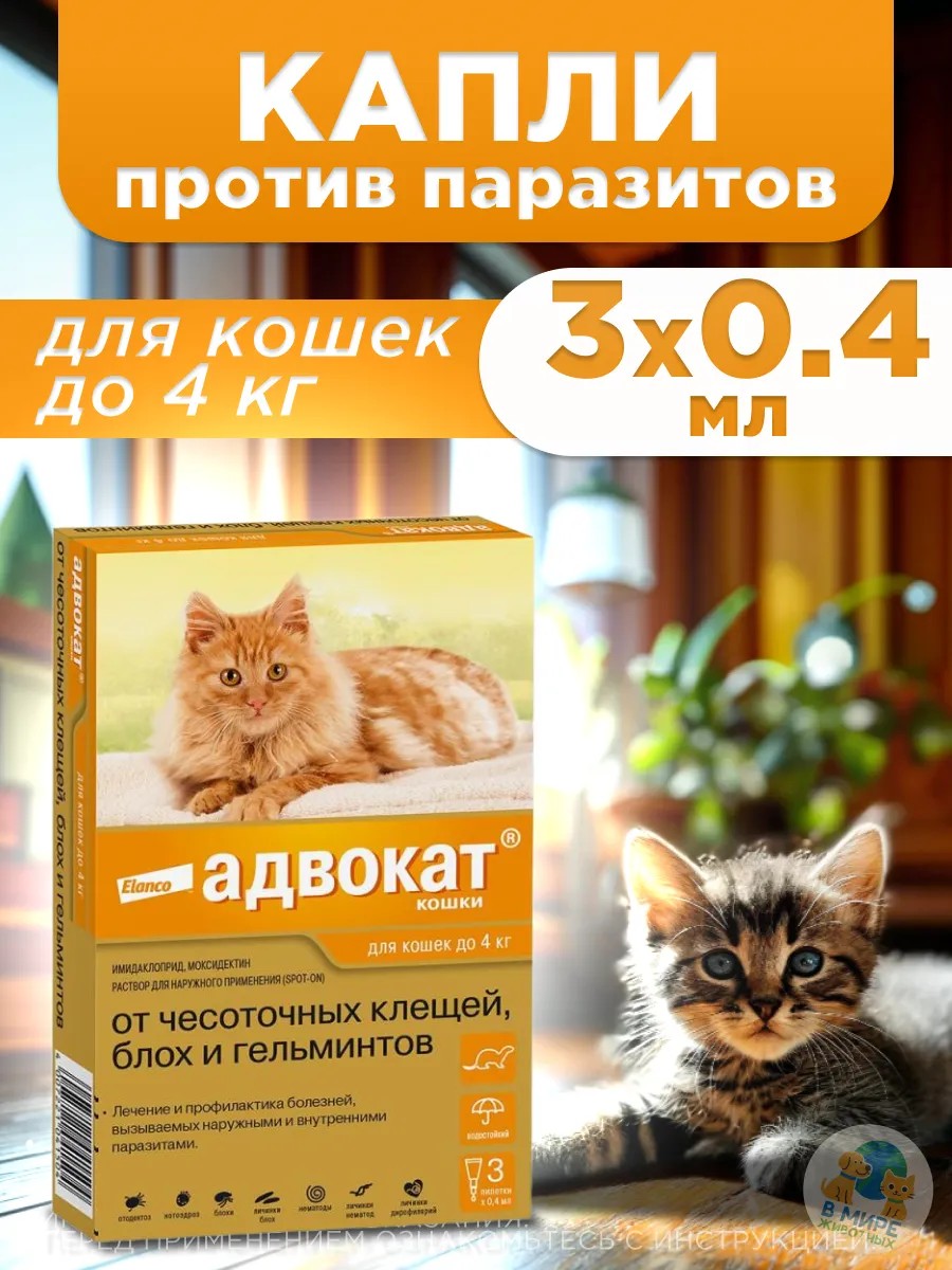 Адвокат – это профессиональная защита вашего питомца от самых опасных паразитов! Немецкая разработка от компании Elanco создана специально для кошек и собак, обеспечивая надежную защиту от блох, клещей, вшей, власоедов и даже гельминтов. Инновационная формула с активными компонентами моксидектин и имидаклоприд гарантирует быстрое уничтожение паразитов и длительную защиту вашего любимца. Удобная форма выпуска в виде капель позволяет легко обработать питомца всего за несколько секунд – просто нанесите содержимое пипетки на холку, и ваш четвероногий друг будет под надежной защитой.