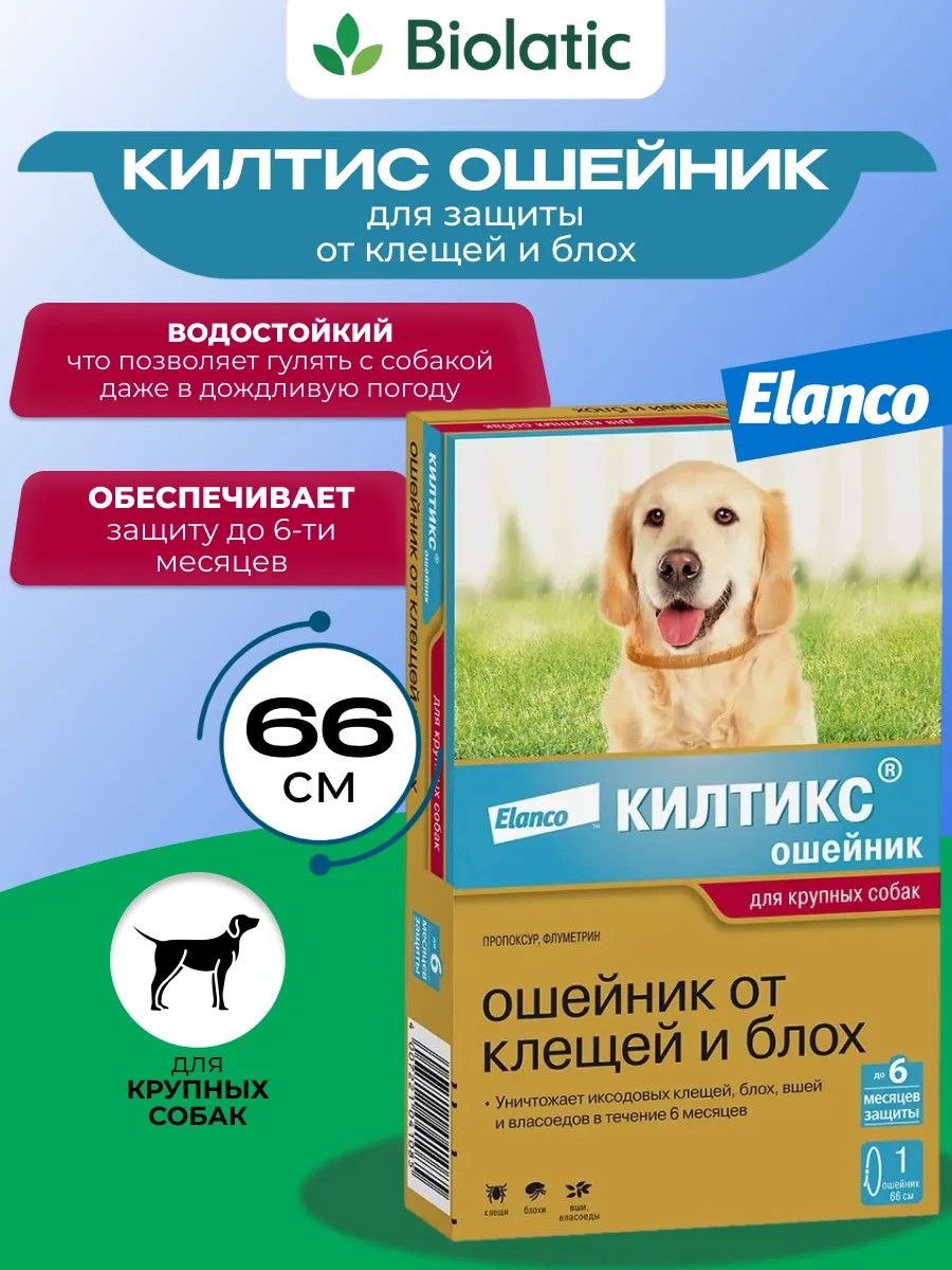 Непрерывное использование ошейника обеспечивает уничтожение и защиту собак от насекомых и иксодовых клещей в течение 7 месяцев.