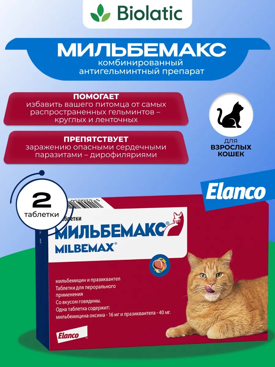 Milbemax tablets for cats are a combined anthelmintic drug prescribed for prophylactic and therapeutic deworming of cats with nematodosis (toxocariasis, ancylostomiasis) and cestodiasis (echinococcosis, dipylidiasis, taeniasis).