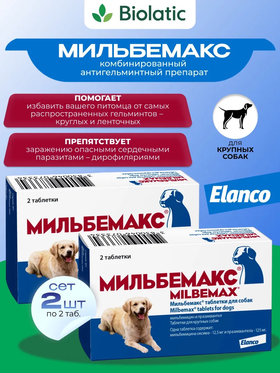 Elanco Мильбемакс для крупных собак сет 2 шт по 2 табл