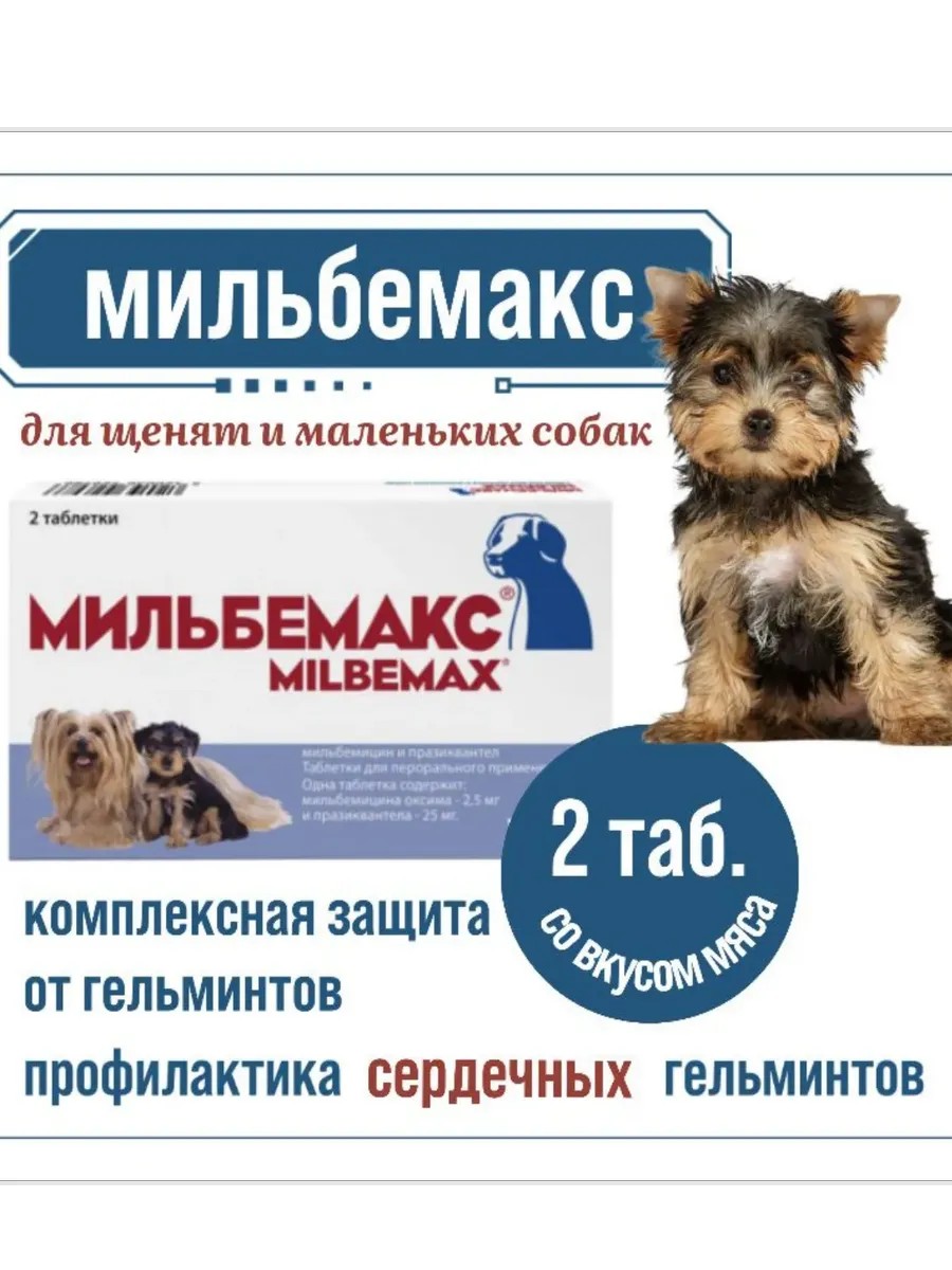 Мильбемакс для щенков и мелких собак до 5 кг, 2 таб - это эффективный и безопасный препарат для защиты вашего питомца от глистов. Эти таблетки, разработанные компанией Elanco, предназначены специально для щенков и маленьких собак весом до 5 кг. В упаковке содержится 2 таблетки, что обеспечивает полный курс лечения от различных видов глистов. Мильбемакс эффективно борется с круглыми глистами, включая аскариды, токсокары, анкилостомы и власоглавы, обеспечивая полную защиту вашего питомца. Препарат удобен в применении, так как таблетки легко давать собаке. Мильбемакс - это надежный способ защитить вашего щенка или маленькую собаку от опасных паразитов и обеспечить его здоровье.