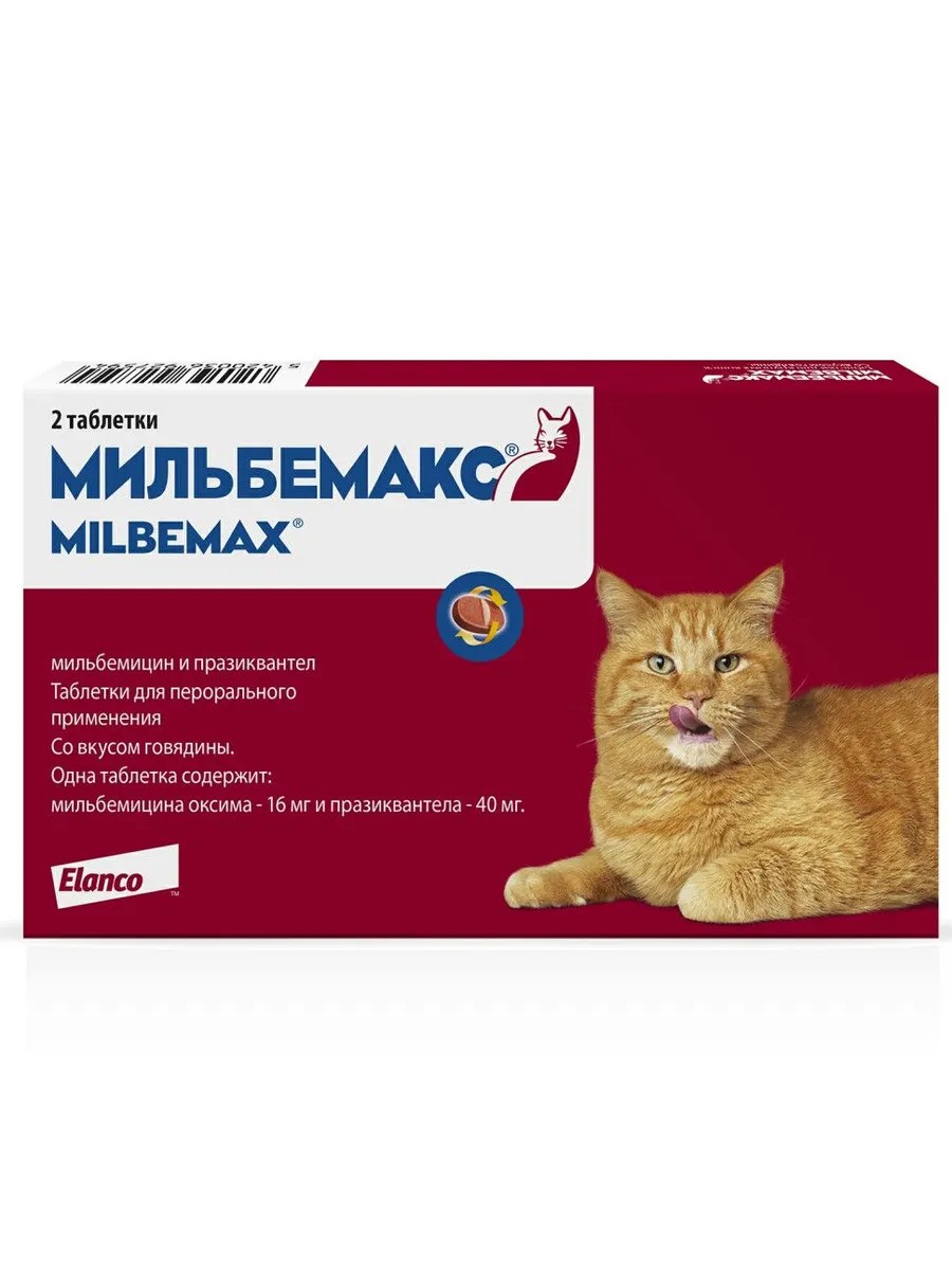 Мильбемакс (Elanco), таблетки от гельминтов со вкусом говядины для крупных кошек – 2 таблетки - эффективное средство для борьбы с глистами, специально разработанное для крупных кошек. В упаковке содержатся две таблетки, что делает его удобным для применения. Препарат отличается высокой безопасностью и эффективностью благодаря продуманной формуле. Мильбемакс помогает устранить широкий спектр паразитов, включая ленточных и круглых червей, что важно для поддержания здоровья вашего питомца.