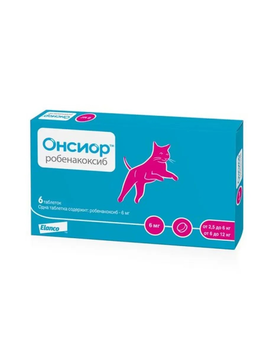 Онсиор применяют кошкам от 2,5 до 6 кг веса один раз в день по 1 таблетке, от 6 кг до 12 кг веса – по 2 таблетки.