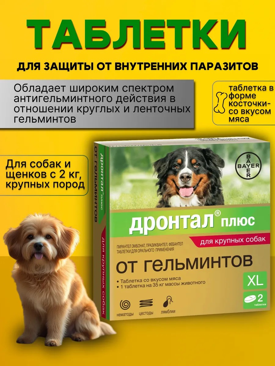 Дронтал — это эффективный препарат для защиты вашего животного от глистов. Таблетки Дронтал от Elanco разработаны специально для собак и обеспечивают надежную защиту от широкого спектра паразитов, включая круглых и ленточных глистов. Легко давать, благодаря приятному вкусу, Дронтал быстро и эффективно избавляет вашего любимца от паразитов, помогая ему оставаться здоровым и активным. Дронтал — это забота о здоровье вашего четвероногого друга.