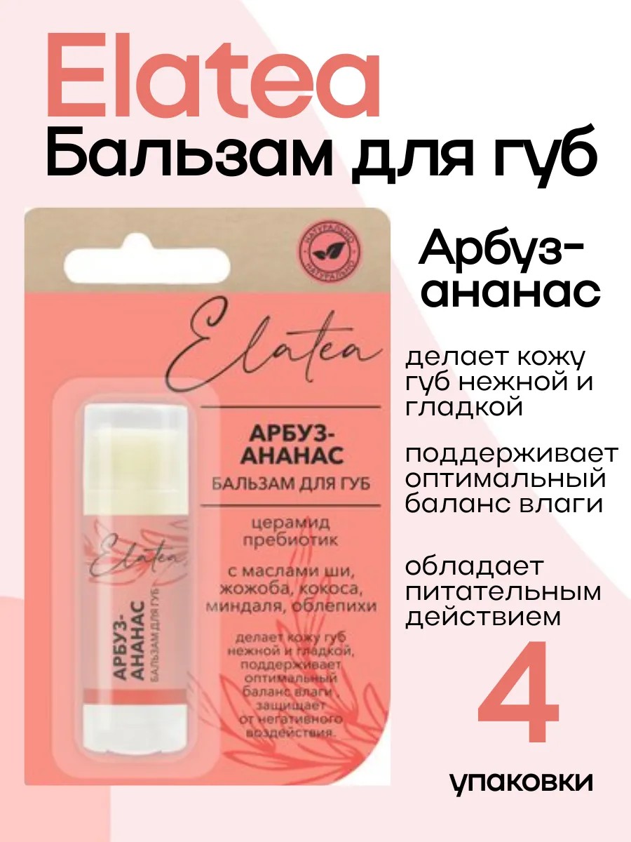 | Комплектация | Бальзам для губ Арбуз-Ананас 4,8 г Elatea Элатея; 4 упаковки |
