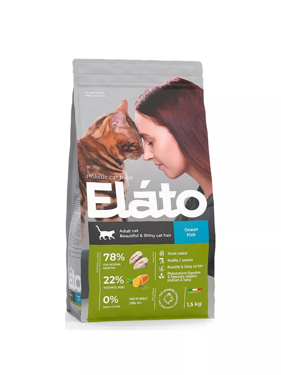 Elato Holistic сухой корм кошкам для красивой шерсти с Рыбой1,5кг