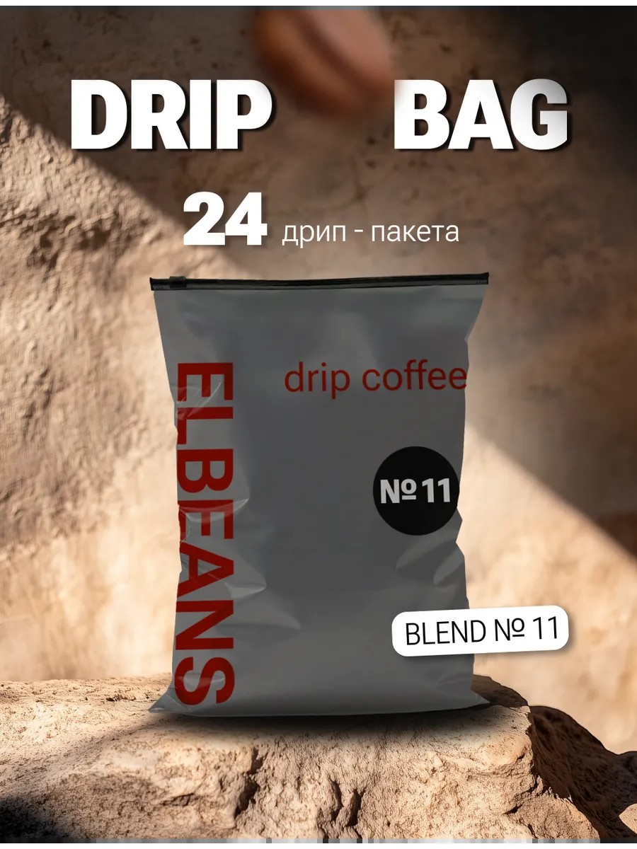 Discover the refined taste and aroma of premium Elbeans Blend No. 11 drip coffee. br/br/This unique blend of high-quality Arabica and Robusta will give you unforgettable pleasure with every cup. br/br/The specially designed drip coffee format will provide you with convenience and ease of preparation, no matter where you are.br/br/Each package contains 24 drip bags, making this coffee an ideal choice for both home and office. br/br/Enjoy the rich flavor and invigorating caffeine that will give you a boost of energy for the whole day!br/br/Elbeans Blend №11 is made in Russia according to strict quality standards and does not contain GMOs, artificial flavors or additives. This is a completely natural product, suitable for vegetarians and those who follow dietary standards. Store this amazing coffee in conditions not exceeding 20°C and enjoy its freshness all year round.br/br/Immerse yourself in a world of rich flavor and sophisticated aroma with Elbeans Blend №11 drip coffee bags. This product will be a great companion for your morning or break during the day, offering you not only pleasure but also health care thanks to the vitamins it contains. Choose the best for you and your loved ones!