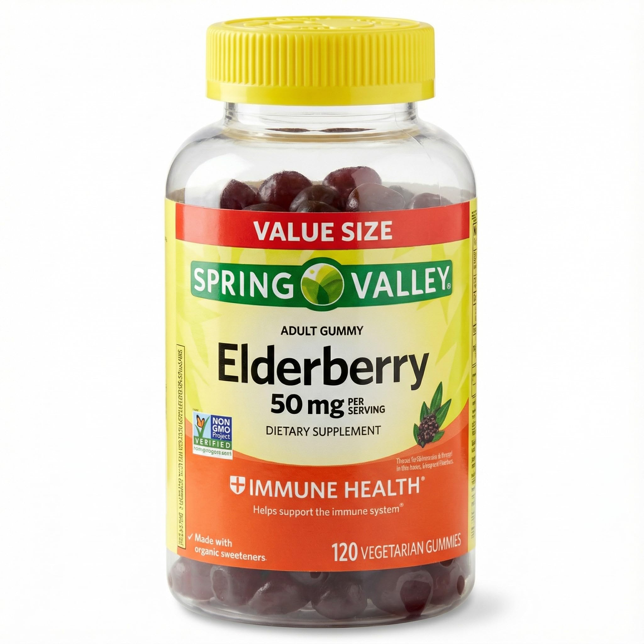 Elderberry 50 mg 120 Vegetarian Gummies Immune Support Supplement Adult Immunity Gummies for General Wellness.