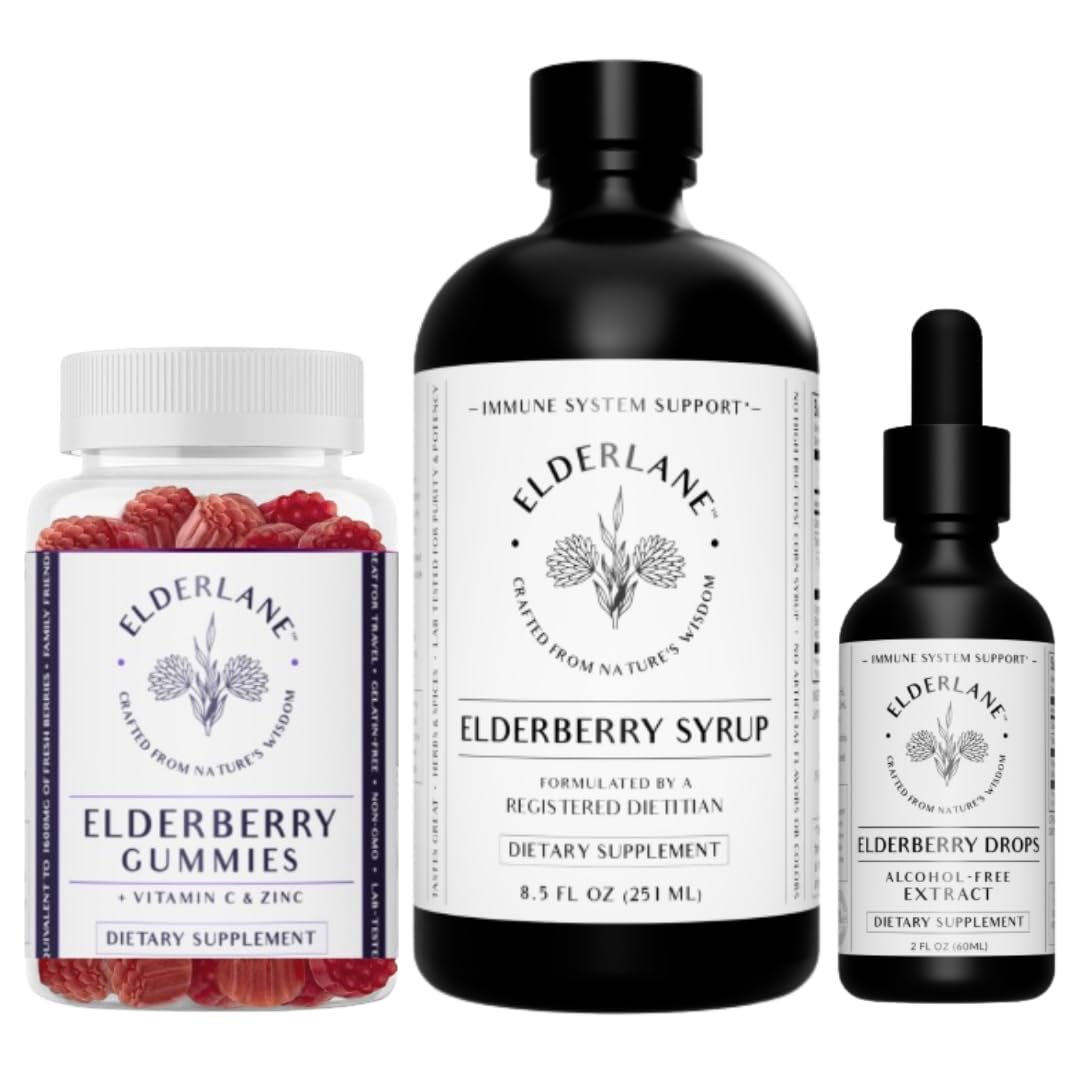 Elderlane Elderberry Kit - Formerly RD Naturals - Immune Support Supplement for Adults and Kids - 8.5oz Syrup, 60ct Gummies, 2oz Drops