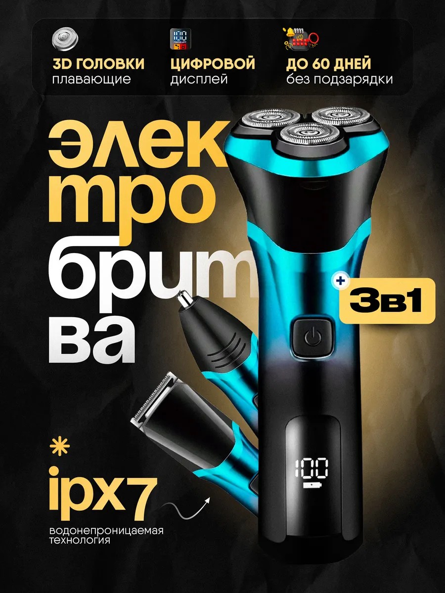 Электробритва 3 в 1 сочетает возможности машинки для стрижки волос и машинки для бороды. Эта электробритва идеально подходит для лица и тела. Ее хорошая конструкция обеспечивает легкость использования. Более того, устройство бесшумное благодаря инновационным технологиям.Машинка оборудована водонепроницаемостью уровня IPX 7, что делает ее надежной для влажного и сухого бритья. Система роторных головок позволяет достичь идеальной гладкости без раздражений кожи. Плавающая головка адаптируется к контурам лица, обеспечивая комфортность каждой процедуры.Триммер оснащен LED дисплеем с индикатором заряда батареи, что помогает следить за временем работы устройства. Технологии отображения данных упрощают использование даже новичкам. Роторная система бритвы поддерживает эффективность на высоком уровне, делая процесс ухода за собой удобным и приятным.Этот прибор предназначен для мужчин, которые стремятся к превосходному результату ежедневно.