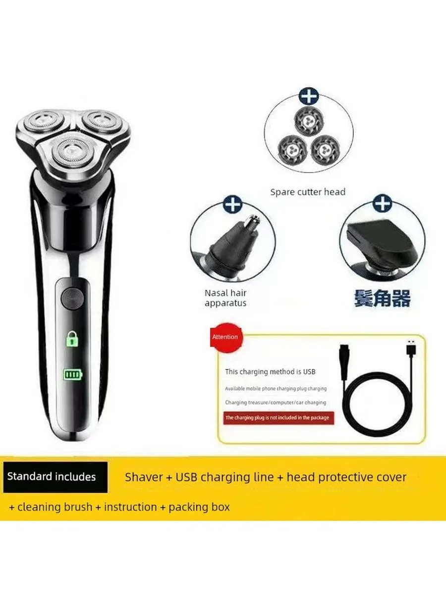 Электробритва с тремя лезвиями (классическая 3-лезвийная + триммер для носа + триммер для бакенбард + запасная головка)