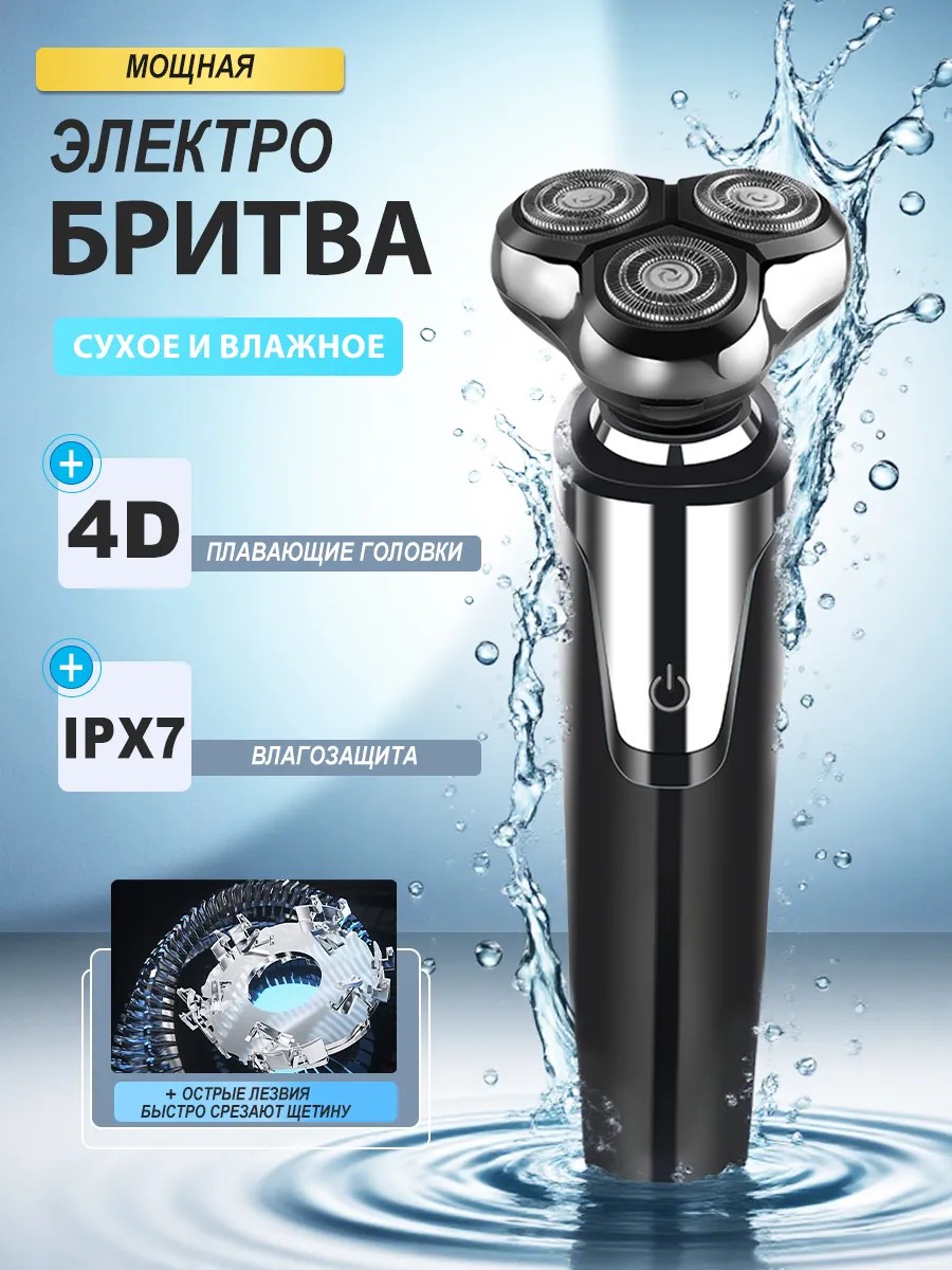 Электробритва с 4D плавающей головкой и двойными лезвиями обеспечивает чистое и комфортное бритьё. Подходит для сухого и влажного использования благодаря влагозащите уровня IPX7. Мягкое покрытие корпуса приятно на ощупь и удобно лежит в руке. Встроенный аккумулятор обеспечивает до 120 минут автономной работы. Устройство легко чистится и подходит для ежедневного использования.