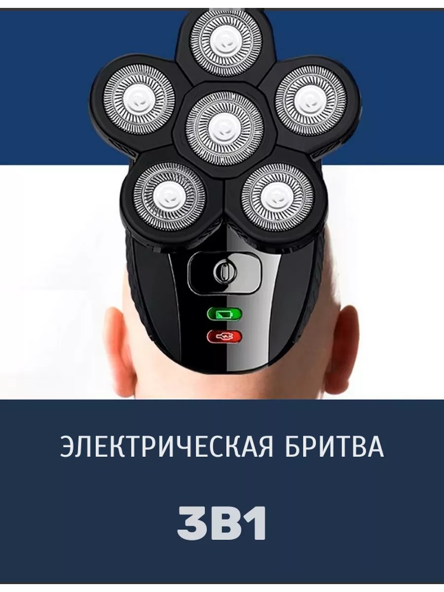 | Комплектация | Электро бритва мужская 6D; Насадка триммер; направляющие гребни 3-5-7 мм; Насадка триммер для носа и ушей; щетка; зарядный кабель; инструкция |
