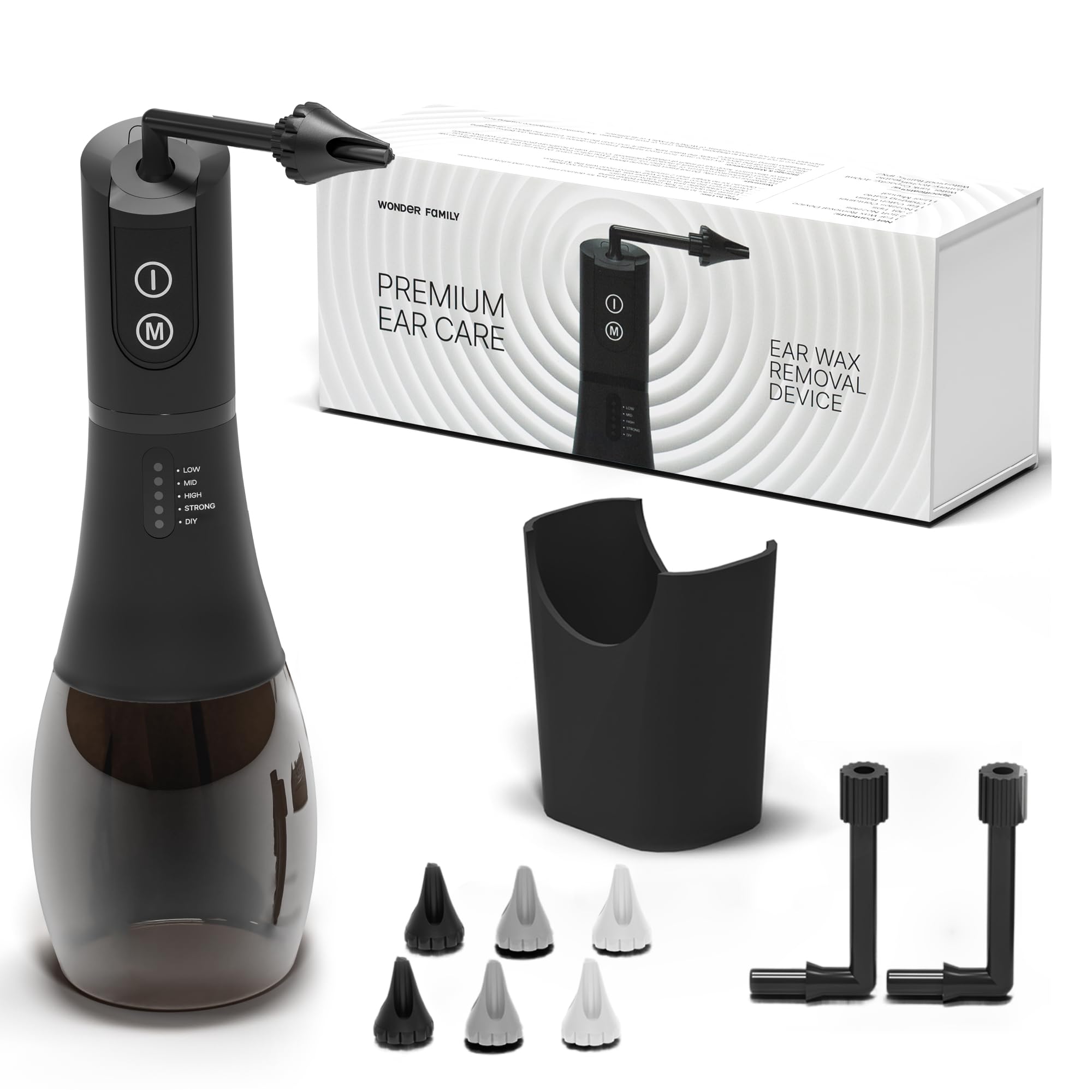 Safe, Effective User-Friendly: More efficient than traditional tools and safer than cotton swabs or ear candles, this ear wash system uses gentle water flow that won't harm the inner ear. Complete Ear Irrigation Kit: Along with the waterproof electric flusher, this set includes 6 interchangeable nozzles, ear cleaning tips, and a convenient catch b — everything you need for effective cleaning, anytime, anywhere. Customizable Water Pressure: Whether you're a first-time user or experienced, choose from 5 adjustable pressure settings. Start with Low or Mid levels, then gradually increase to High or Pulse mode as needed. Built-In Auto Shut-Off: For added comfort and protection, the device features a 2-minute timer that automatically stops the ear rinse once the cycle is complete. Electric Ear Cleaning Device: Forget about Q tips and manual methods — our automatic ear wax remover cleans your ears in under two minutes using a safe, hands-free water irrigation system.