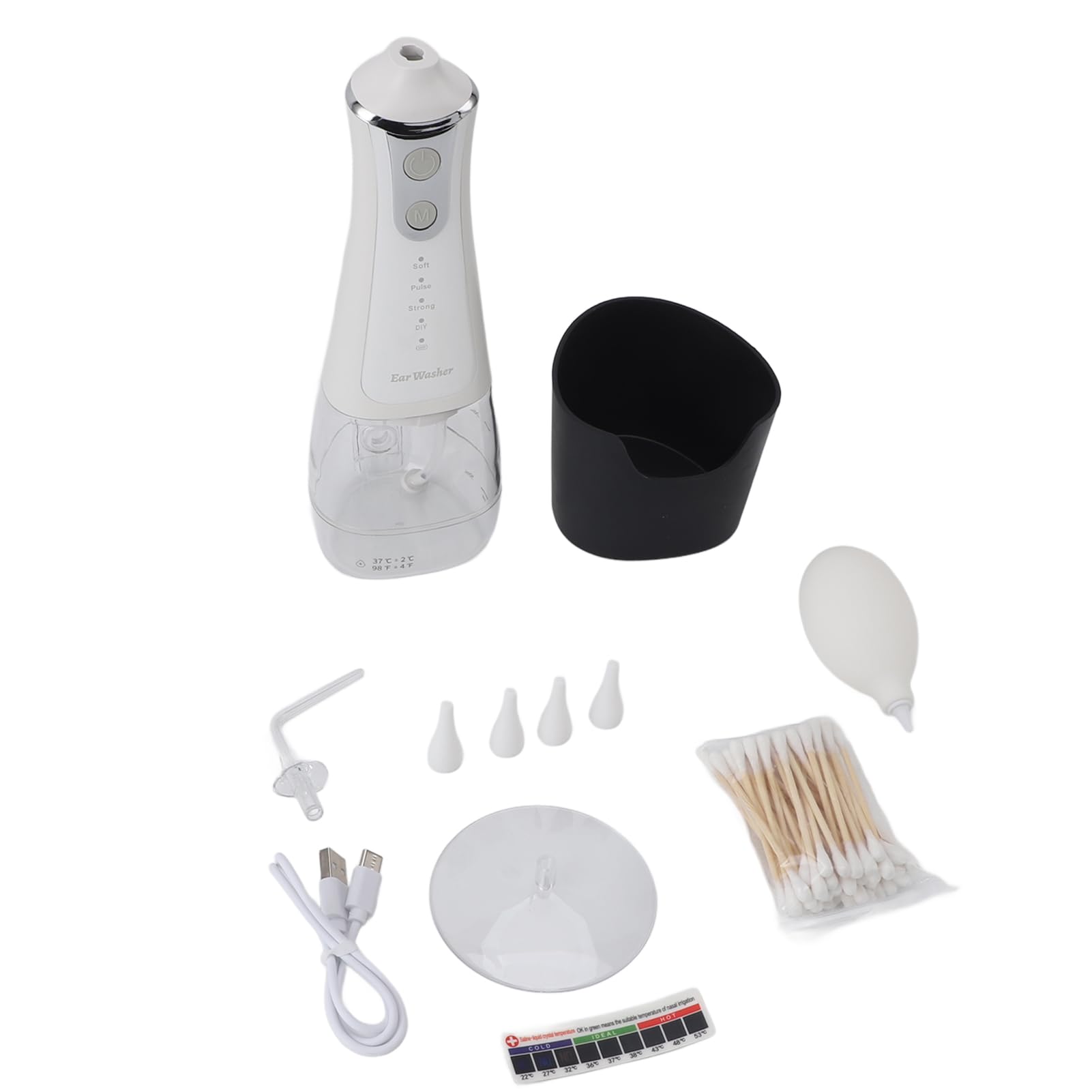 [PORTABLE CONVENIENCE] Compact and travel-friendly, this electric ear cleaner is for home use or on-the-go ear care. Its lightweight design and rechargeable battery make it ideal for maintaining ear health anywhere, anytime without the need for bulky equipment. [SAFE AND GENTLE] Constructed from premium ABS material, this ear wax removal system provides a reliable and comfortable cleaning experience. The soft-touch design and gentle water pressure ensure irritation- use while maintaining excellent standards. [COMPLETE CLEANING KIT] Equipped with multiple ear cleaning attachments including cotton swabs and specialized tips, this versatile kit addresses all your ear care needs. The comprehensive accessories allow for a customized cleaning experience tailored to your personal preferences. [EASY TO USE DESIGN] Designed for effortless operation, this handheld ear cleaner features intuitive controls for independent water flow adjustment. Its ergonomic shape fits comfortably in your hand, making it simple to use for both beginners and experienced users alike. [POWERFUL EAR WAX REMOVAL] The Electric Ear Wax Removal Tool delivers thorough and efficient cleaning of the ear canal, eliminating stubborn wax buildup for improved hearing and ear health. Its advanced technology ensures a deep yet gentle cleanse, promoting optimal ear with every use.