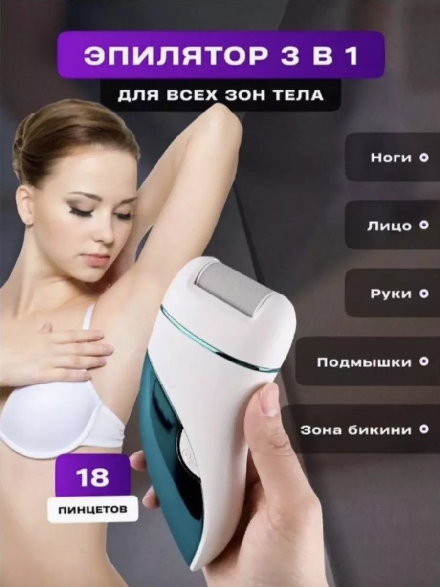 Женский эпилятор с встроенным аккумулятором - это идеальный инструмент 3 в 1 для удаления волос на любой зоне тела и очищения пяточек. Представленный прибор VGR имеет 18 пинцетов, поможет избавиться от нежелательных волосков на чувствительных местах: лицо, подмышки, зона бикини, интимная зона до 4-х недель. С универсальным предметом бытовой техники идет: дополнительный элемент - бритва, насадка для бережного очищения пяток, шнур для питания. Представленный эпилятор в комплекте с другими насадками поможет уменьшить рост волос в будущем, а также избавиться от них навсегдаПрибор работает от встроенного аккумулятора, который обеспечивает продолжительную работу без перерыва на зарядку. Триммер со встроенной батареей поможет убирать вросшие волосы и усики, а водонепроницаемая головка эпилятора позволяет использовать его в ванной или под душем для более комфортного удаления волос. Такой набор станет замечательным подарком для любой женщины, которая ценит здоровье и красоту своего тела. Электронный прибор очень подходит для профессионального использования в салонах красоты или для домашнего использования. Наши товары проходят тщательный контроль качества, что гарантирует отличную работу в течение многих лет. Эпилятор избавит от нежелательных волосков на любом месте тела быстро и эффективно. Электрическая насадка для эпиляции идеально подходит для удаления волос на ногах и руках, а специальная насадка для пяток поможет убрать мертвую кожу и обеспечивает приятный массажный эффект. Благодаря нашему профессиональному прибору, вы можете избавиться от нежелательных волосков быстро и без боли и насладиться гладкой кожи сразу после применения. Эпилятор - это эффективное средство для ухода для мужчин и женщин на каждый день, которое поможет убрать волосы и сохранить кожу гладкой, мягкой на длительное время. Такое профессиональное устройство с тремя функциями можно подарить любимой маме, подруге, сестре.Вся информация основывается на последних сведениях .