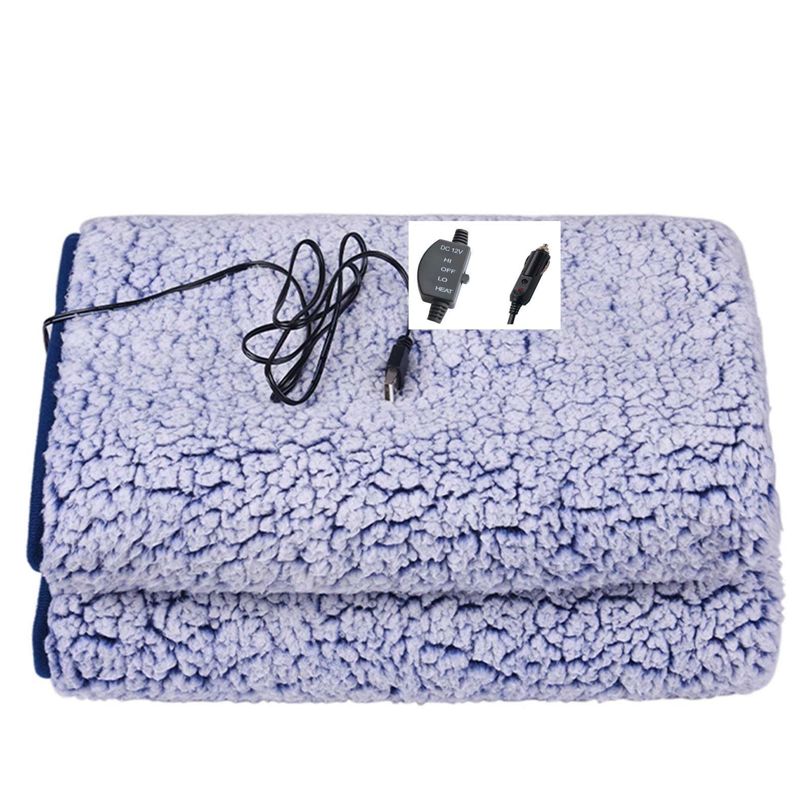 Electric heating blanket, portable electrical heating ceiling with USB plug, warm, soft heating fleece blanket for travel at home, in the office, ideal for car rides, camping, campers or emergencies