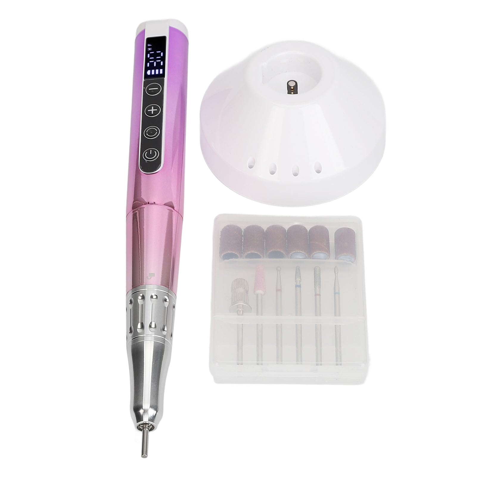 Electric Nail Drill Pen 800mAh 30000RPM Electric Nail Grinder with 6 Sanding Bands Charging Base for Salon
