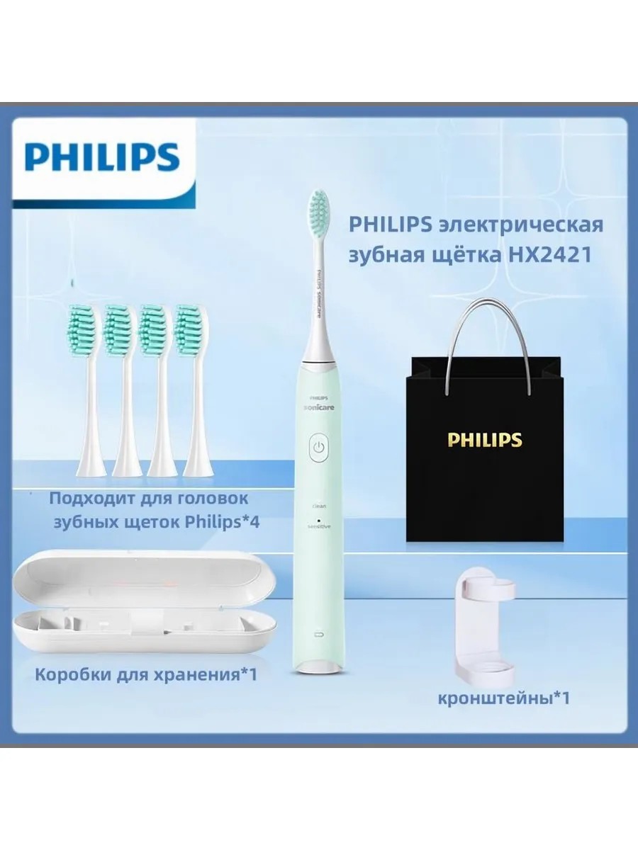 Набор электрощетки HX2421, Зеленый: Ультразвуковая
