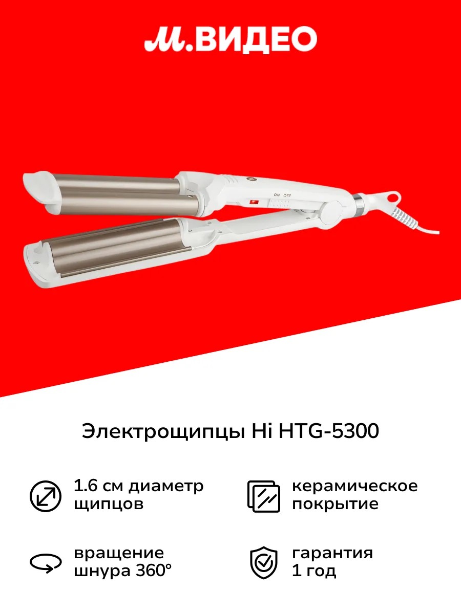 Электрощипцы Hi Тройная волна HTG-5300 нагреваются до 200°C, что позволяет создать стойкую укладку. • Изогнутая форма пластин Оптимальна для получения легких волн и локонов без заломов. • Керамическое покрытие Снижает вероятность повреждения волос, так как обеспечивает бережное воздействие на пряди. • Термоизолированный наконечник Предотвращает получение ожогов. • Готовность к работе через одну минуту после включения Позволяет сэкономить время при создании укладки. Пластиковый корпус не нагревается и не скользит в руке. Это создает комфортные условия для использования. Шарнирное крепление сетевого шнура снижает вероятность перекручивания и повреждения кабеля. Для удобного хранения устройства предусмотрена петля для подвешивания.