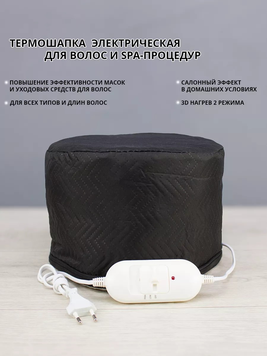 Термошапка электрическая для волос и спа-процедур черная