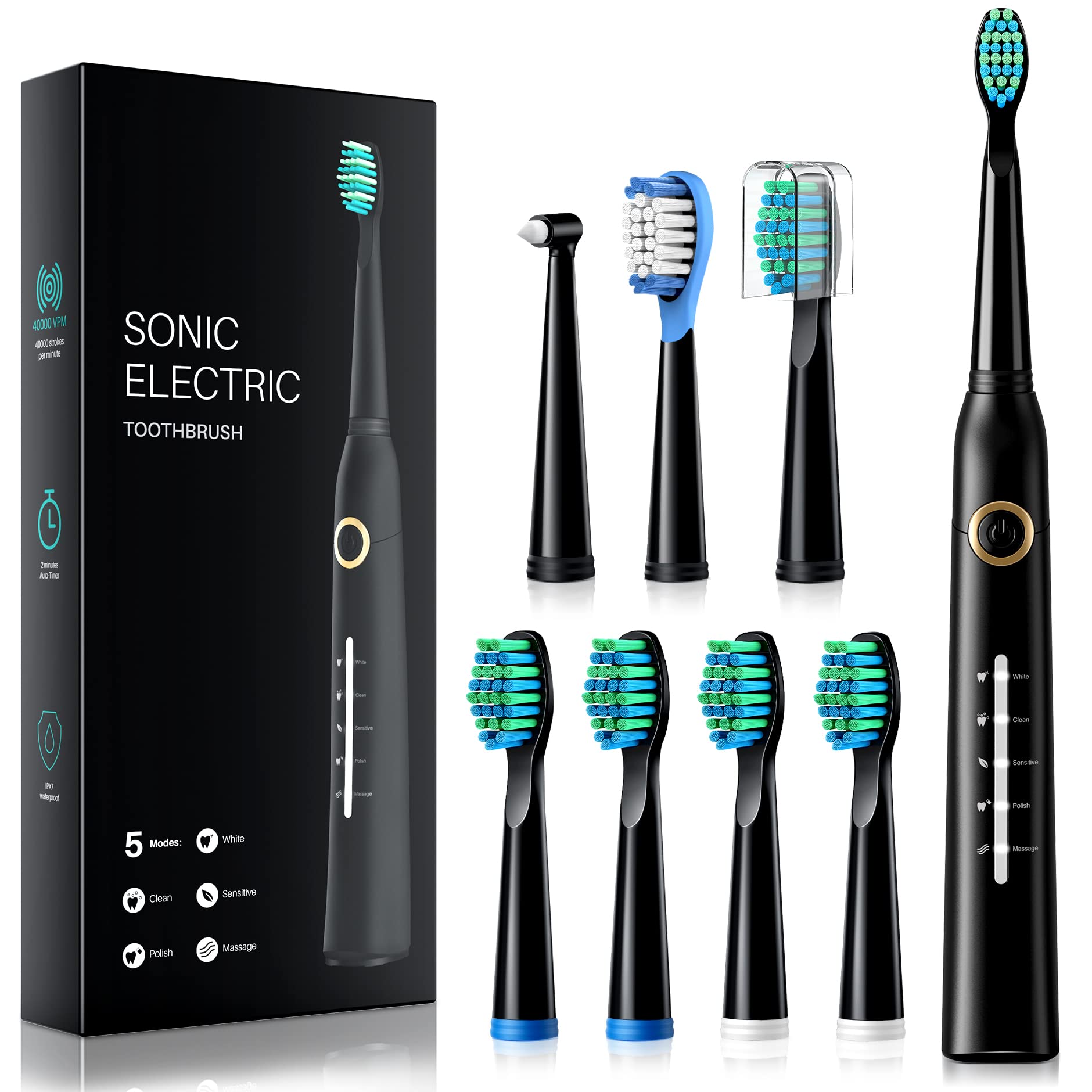 Rotating Electric Toothbrush for Adults with 8 Brush Heads (2 Types) Z Midnight