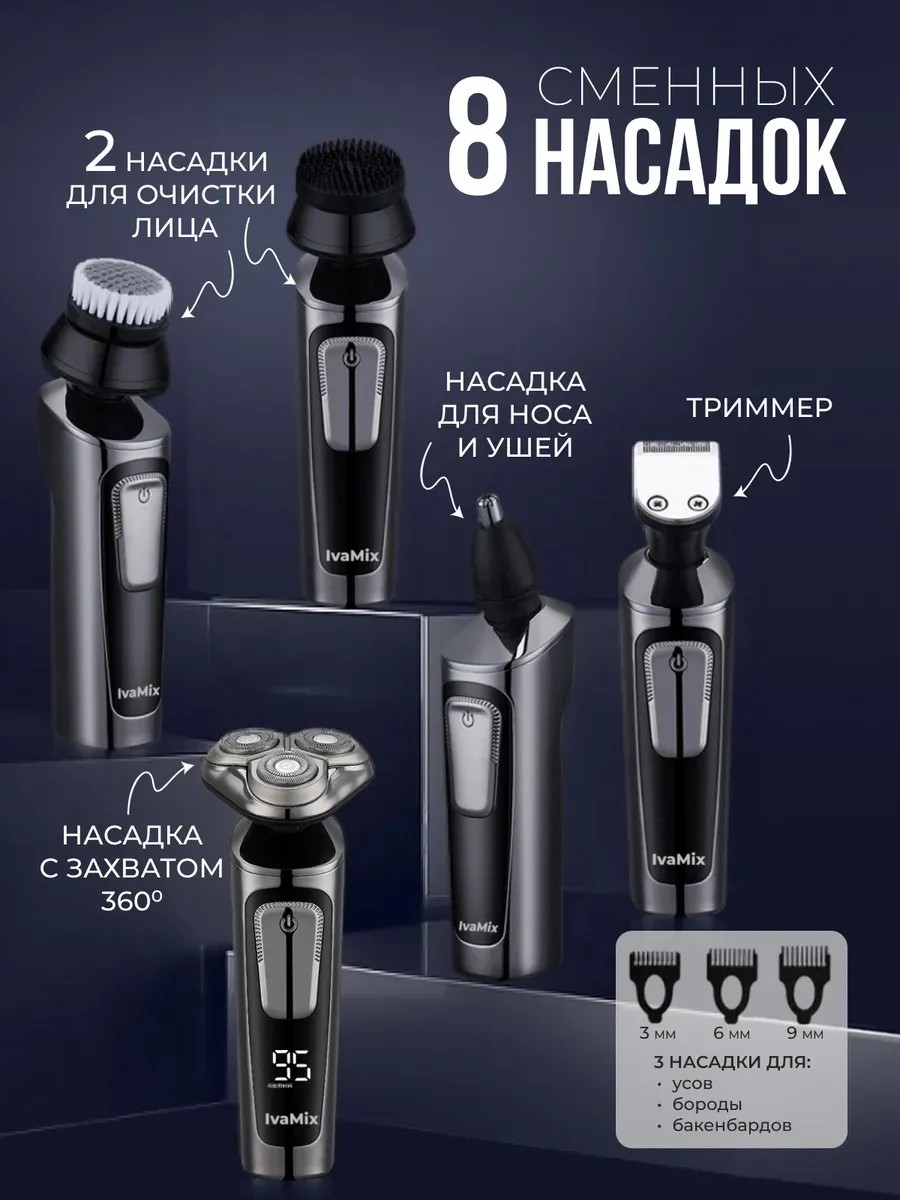 Мужская электрическая бритва для бритья лица - это удобное и многофункциональное устройство, которое обеспечивает идеальный результат без раздражения кожи. В комплекте с бритвой поставляется несколько насадок, включая специальную для тримминга бороды разной длины. Электробритва работает бесшумно благодаря инновационному сплаву материала. Батарея обладает высокой емкостью, позволяя использовать устройство до 100 минут непрерывно.