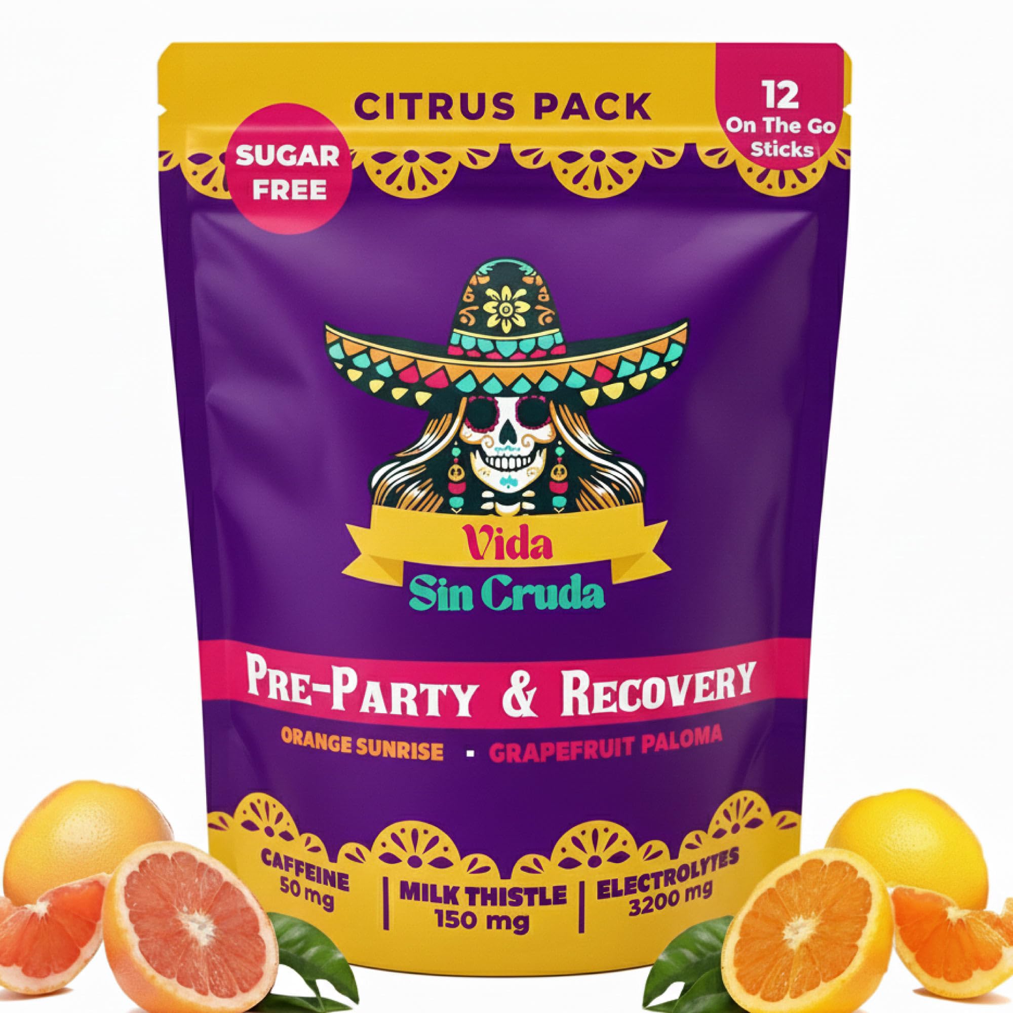 Enjoy The Night. Own The Morning: Big night out? Long shift? Brutal workout? Vida Sin Cruda fuels your night supports recovery — wake up feeling like the best version of you. 12 On-the-Go Single Serve Sticks: Convenient and portable. Just mix one stick with water for a refreshing, functional drink you can take anywhere — gym, work, or social events. Rapid Hydration – 3,200mg of Electrolytes: Replenish what you sweat out (or drank away). Formulated with a powerful blend of electrolytes to help support hydration and replenish minerals lost through sweat, activity, or daily life. . Natural Energy Boost – 50mg of Clean Caffeine: Whether it's the pre-game or your morning meeting, Helps support focus and stamina without the jitters or crash. Just smooth, clean energy when you need it most. Powered by Milk Thistle – 150mg: Feel fresh, not fried. With 150mg of milk thistle, this time-tested ingredient supports liver health. - So you can enjoy the night — and still show up strong the next day.