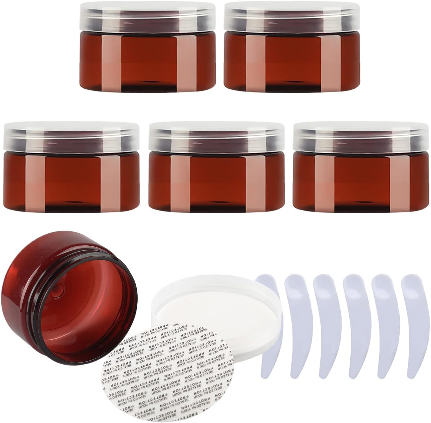 ELEGAM travel pots for cream small pots with lids Pack of 6 100ml Blue Plastic Cream Jars Cosmetic Pots with Clear Lids Containers for Toiletries (Color : Bruin Size : 100ml) 100ml Bruin