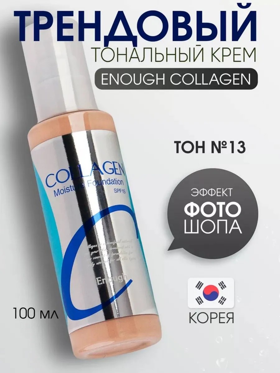 Collagen Enough Moisture Foundation. SPF 15 sun protection. This product glides on smoothly, moisturizing, and nourishing. Collagen makes skin firm and elastic, reduces wrinkles, has an anti-aging effect, and promotes whitening.