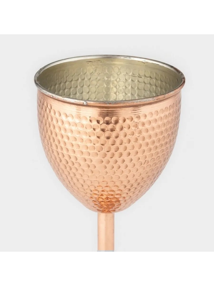 Introducing this exquisite 230 ml copper goblet, perfect for serving a variety of beverages. Crafted from high-quality copper with a hammered finish, this goblet offers a unique look and makes a true centerpiece for any table.