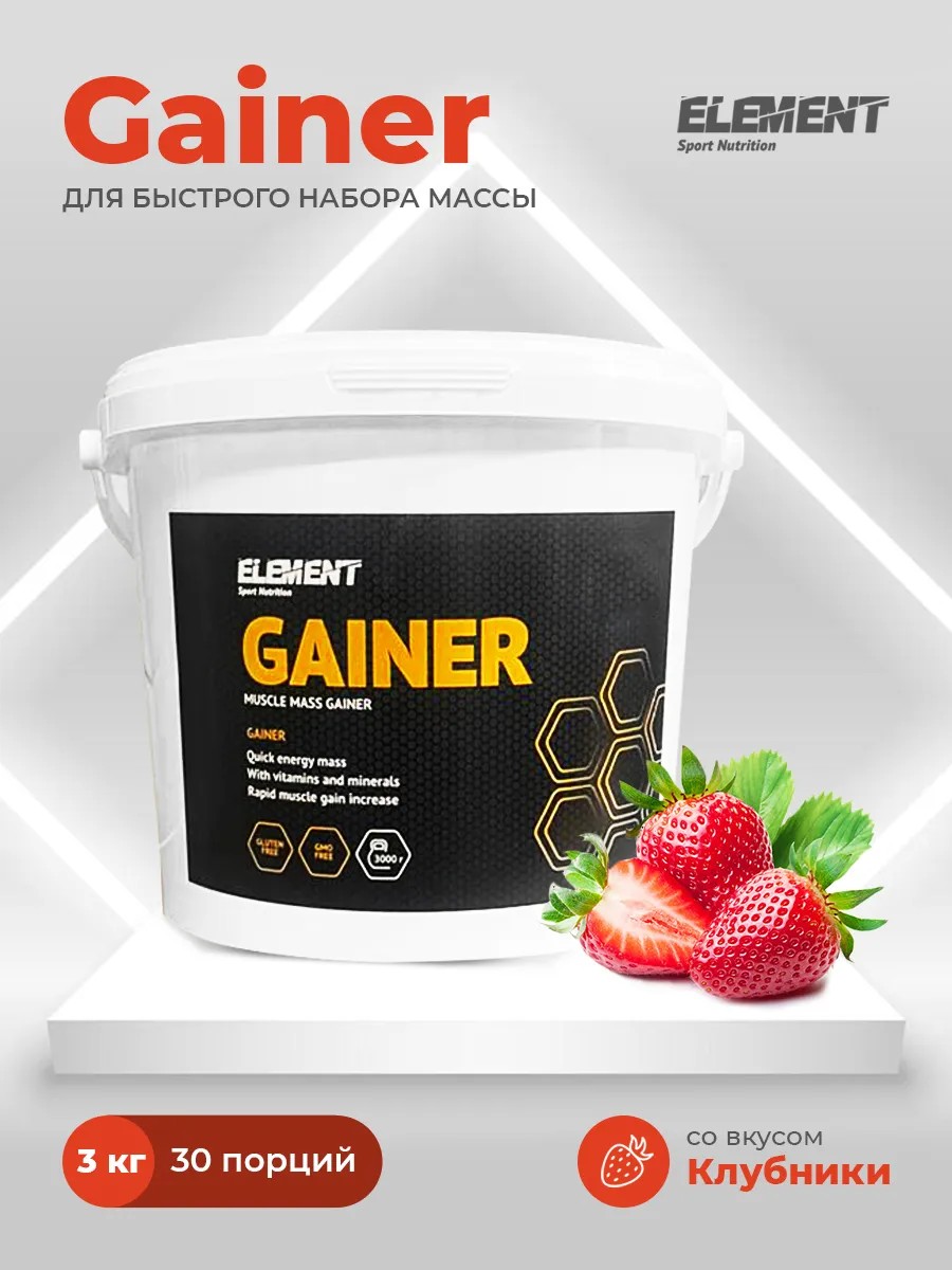 Элемент Спорт Гейнер для набора массы Клубника, 3 кг