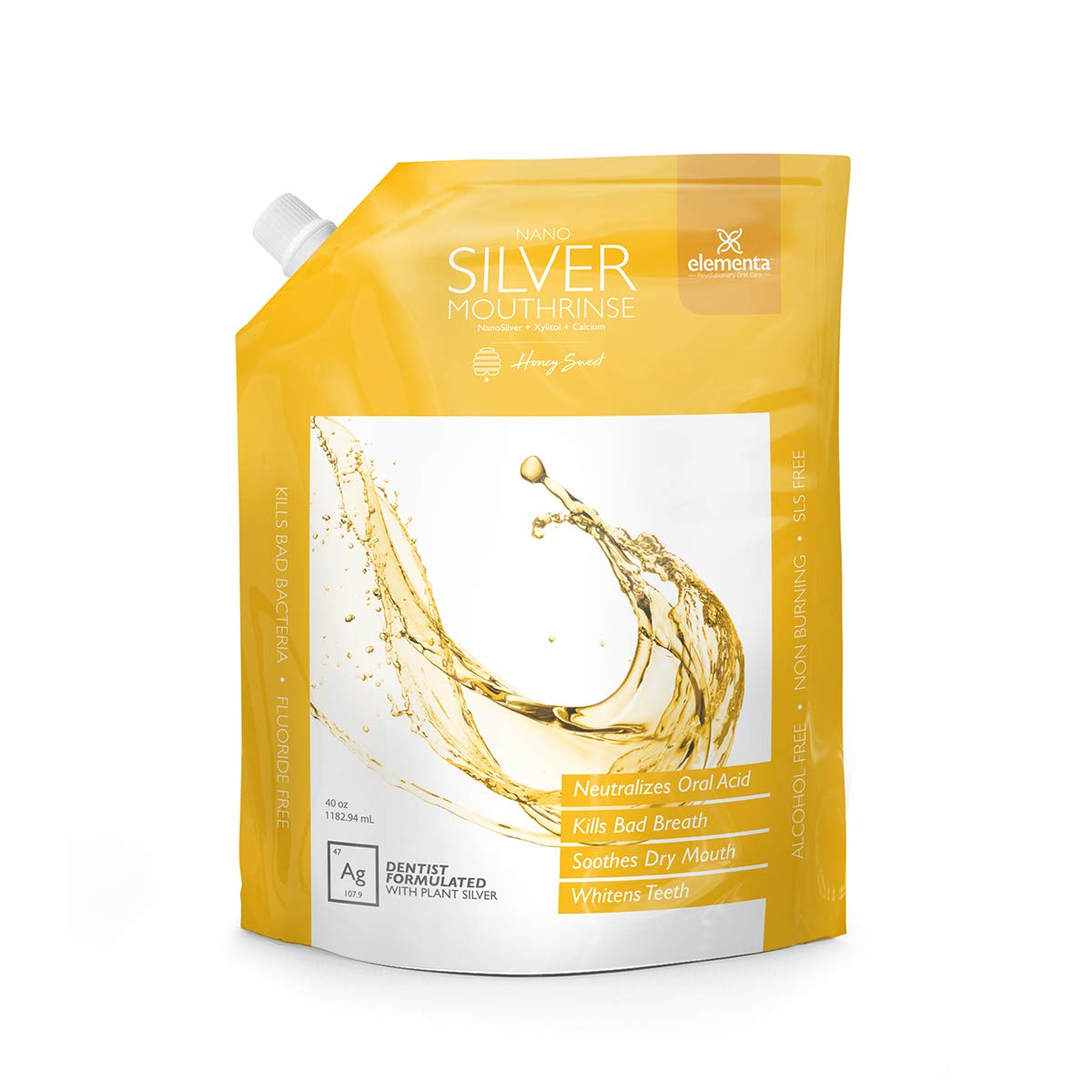 Elementa Silver Nano Silver Xylitol Mouth Wash Refill Pack | Mouth Rinse Oral Care 40 oz | Dentist Formulated Alcohol and Fluoride Free (Honey Sweet)