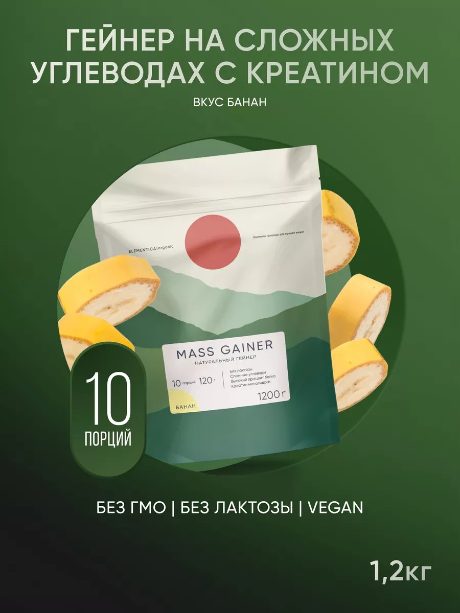 ELEMENTICA ORGANIC Гейнер для набора массы с креатином, 1 200 гр, банан