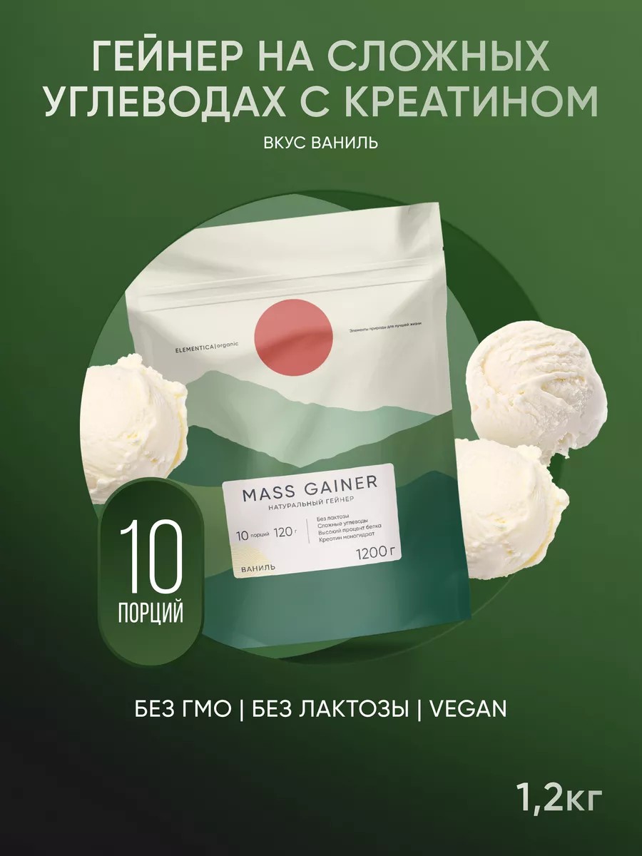 ELEMENTICA ORGANIC Гейнер для набора массы с креатином, 1 200 гр, ваниль