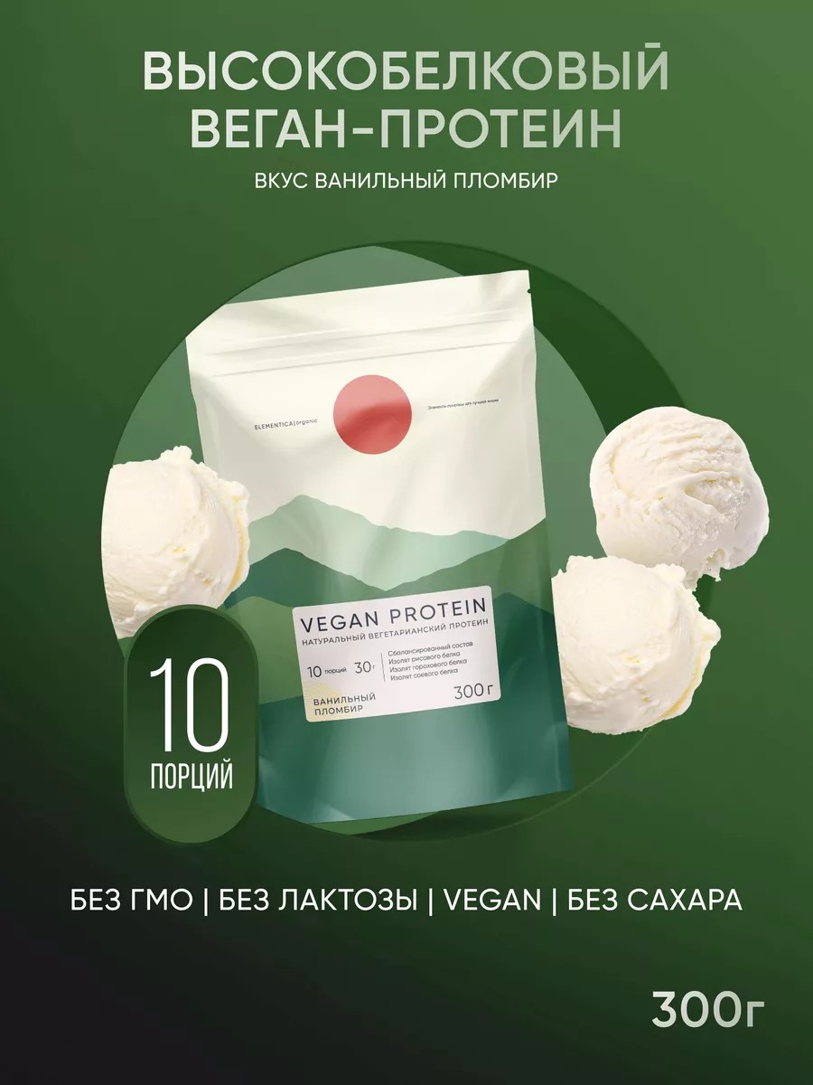 ELEMENTICA ORGANIC Растительный веганский протеин, ванильный пломбир, 300 г