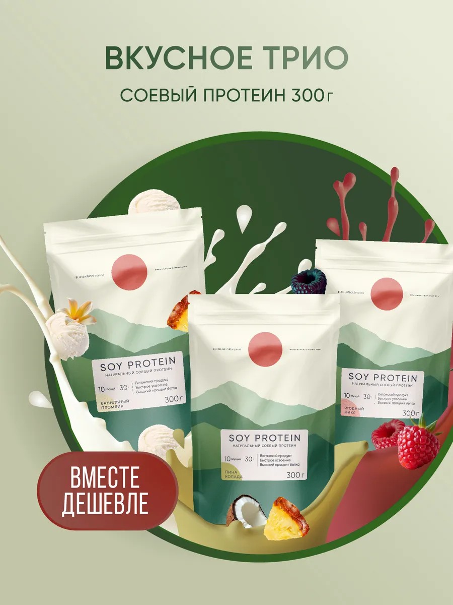 Набор от ELEMENTICA ORGANIC: Три восхитительных вкуса соевого протеина — "Ваниль", "Ягодный микс" и "Пина колада"!
