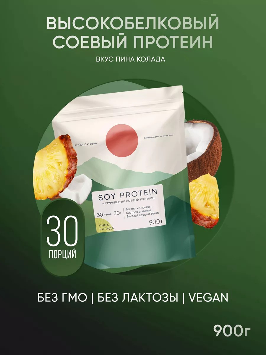 Soy protein - высококачественный изолят растительного белка в виде порошка, содержащий все необходимые аминокислоты BCAA, способствующие росту мышц и оптимальному мышечному восстановлению после интенсивных тренировок. Соевый протеин создан специально для вегетарианцев, веганов и людей, страдающих непереносимостью лактозы. Помогает улучшить работу сердечно-сосудистой системы, снизить уровень холестерина и поддержать организм в отличной форме. Веганский протеин идеально подходит для мужчин, девушек и женщин, заботящихся о своем здоровье. Благодаря своему низкокалорийному составу и высокому содержанию белка протеин поможет достичь ваших целей по похудению, росту мышц и необходимой энергией на каждую тренировку. Наш безлактозный напиток внесет разнообразие в ваше питание и поможет придерживаться оптимального уровня белка. Даже во время похудения, сушки или набора мышечной массы вкусно есть важно, поэтому спортивный коктейль от Elementica Organic имеет ассортимент вкусов без добавления сахара: банановый мусс, шоколадное печенье, шоколадный десерт, пина колада, фисташковый десерт, ванильный пломбир и ягодный микс.