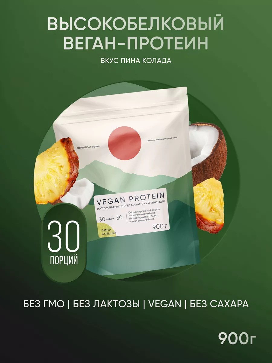 ELEMENTICA ORGANIC Растительный веганский протеин, пина колада, 900 г
