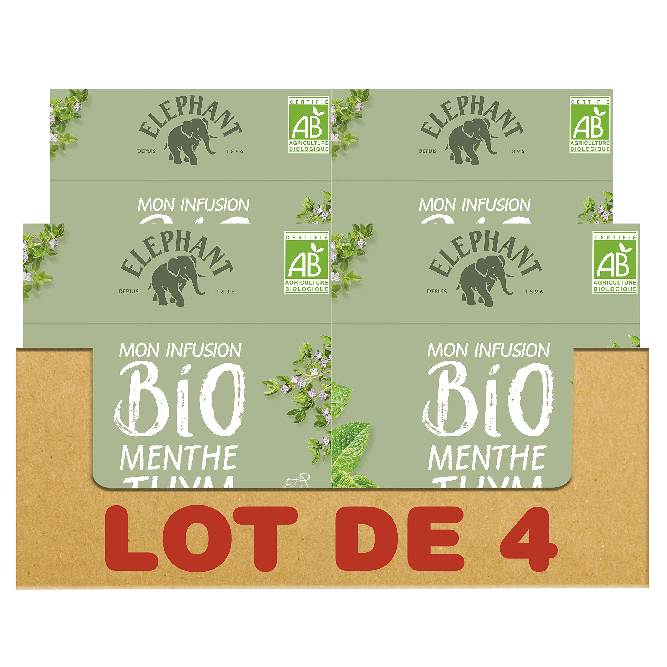 : Discover the 20 Elephant Organic Mint and Thyme Infusion tea bags, a blend of herbs to infuse and enjoy throughout the day. Treat yourself: take a nature break! Enjoy a naturally comforting moment with the delicious blend of mint and thyme in this herbal tea. Just for you, Elephant has selected flavorful, organically grown herbs for a moment of natural pleasure with this Organic Infusion range. The Organic Infusion teas come in pyramid-shaped bags, allowing all the ingredients to generously release their natural aromas so you can fully enjoy your infusion. For perfect enjoyment, infuse one bag in 200 ml of water at 100 C for 4 to 5 minutes, without adding sugar. PEFC certified: the cardboard in this Elephant herbal tea box comes from sustainably managed forests and controlled sources. Elephant, a tea brand born in Provence in 1896, quickly established itself as a symbol of indulgence and quality. In 2016, the brand celebrated its 120th anniversary. Such experience speaks for itself! Elephant pioneered the first flavored teas in France, reinventing hot water for everyone's enjoyment. A recognized expert in botanicals, the brand combines the full flavor of plants with the deliciousness of fruits to offer you a delightful moment of relaxation. A gourmet and friendly brand, Elephant is the French's favorite tea brand . The famous, fun, and stylish teapot, perfectly embodying the brand (shaped like a little elephant), has become a cult classic. From a simple promotional item, it has become a true icon of the brand over the years. Discover our Elephant Organic Tea range and immerse yourself in pure bliss. Just for you, Elephant has selected flavorful, organically grown plants for a moment of natural pleasure. Elephant, the leading herbal tea brand by volume sales in France in 2019 - Nielsen MAT P13 2019. Ingredients: Mint (50 ), Thyme (50 ). P.when('A').execute(function(A) { A.on('a:expander:toggle_description:toggle:collapse', function(data) { window.scroll(0, data.expander. expander[0].offsetTop-100) }) }) Instructions: Infuse 1 tea bag for 4 to 5 minutes in 200 ml of water at 100 C (without sugar). Safety Warning: Consume in moderation. For adults only. store in a dry place at room temperature. See morePEFC certified: the cardboard in this Elephant herbal tea box comes from sustainably managed forests and controlled sources. The Pyramid tea bag allows all the ingredients to generously release their natural aromas so you can fully enjoy your infusion. For a perfect brew, steep one bag in 200 ml of water at 100 C for 4 to 5 minutes, without adding sugar. With Elephant herbal teas, you'll be swimming in pure bliss! This infusion is made with organically grown mint and thyme. Treat yourself: take a nature break. Enjoy a naturally comforting moment with the delicious blend of Mint and Thyme herbal tea. Discover the 20 Elephant Organic Mint and Thyme Infusion tea bags, a blend of herbs to infuse and enjoy throughout the day.Description du produit Découvrez les 20 sachets Mon Infusion Bio Menthe et Thym Elephant, un mélange de plantes à infuser pour vous accompagner tout au long de la journée. Faites-vous du bien : prenez une pause nature ! Profitez d'un moment naturellement réconfortant avec le mélange savoureux de la menthe et du thym de cette tisane. Rien que pour vous, Éléphant a sélectionné des plantes issues de l'agriculture biologique, pleines de goût, pour un moment de plaisir au naturel avec cette gamme Mon Infusion Bio. Les tisanes Mon Infusion Bio sont contenus dans des sachets Pyramid , laissant tous les ingrédients exprimer généreusement leurs arômes naturels pour vous faire profiter de tous les plaisirs de votre infusion. Pour une dégustation parfaite, laissez infuser un sachet dans 200 ml d'eau à 100 C, 4 à 5 minutes, sans rajouter de sucre. Certifié PEFC : le carton de cette boîte d'infusions Elephant est issu de forêts gérées durablement et de sources contrôlées. Elephant, marque d'infusions née en Provence en 1896, s'est très vite imposée comme un symbole de gourmandise et de qualité. En 2016, la marque a fêté son 120? anniversaire. Autant d'expérience, ça ne trompe pas ! Eléphant est à l'origine des premières infusions parfumées en France, réinventant ainsi l'eau chaude pour le plaisir de tous. Experte reconnue des plantes, la marque associe toutes les saveurs des plantes à la gourmandise des fruits pour vous offrir un délicieux moment de lâcher-prise. Marque gourmande et sympathique, Éléphant est la marque d'infusions préférée des Français . La célèbre théière design, fun et toute à l'image de la marque (en forme de petit éléphant), est devenue culte. De simple objet publicitaire, elle est devenue au fil des années une véritable icône de la marque. Découvrez également notre gamme Elephant Infusions Bio et nagez dans le BIOnheur. Rien que pour vous, Elephant a sélectionné des plantes issues de l'agriculture biologique, pleines de goût, pour un moment de plaisir au naturel. Elephant, marque d'infusions leader en ventes volumes en France en 2019 - Nielsen MAT P13 2019. Ingrédients Ingrédients : Menthe (50 ), Thym (50 ). P.when('A').execute(function(A) { A.on('a:expander:toggle_description:toggle:collapse', function(data) { window.scroll(0, data.expander. expander[0].offsetTop-100) }) }) Mode d'emploi Infusez 1 sachet 4 à 5 minutes dans 200 ml d'eau à 100 C (sans sucre). Avertissement De Sûreté À consommer avec modération. Réservé aux adultes. Conserver au sec et à température ambiante. Voir plusCertifié PEFC : le carton de cette boîte d'infusions Elephant est issu de forêts gérées durablement et de sources contrôlées. Le sachet Pyramid laisse tous les ingrédients exprimer généreusement leurs arômes naturels pour vous faire profiter de tous les plaisirs de votre infusion. Pour une dégustation parfaite, laissez infuser un sachet dans 200 ml d'eau à 100 C, 4 à 5 minutes, sans rajouter de sucre. 