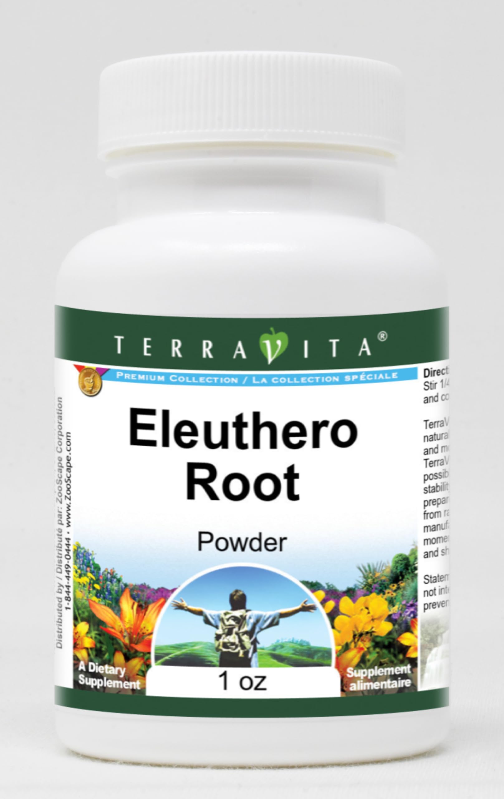 Convenient Powder format. Size: 1 oz. Manufacturer: TerraVita. No fillers. Eleuthero Root Powder (1 oz, ZIN: 511305).