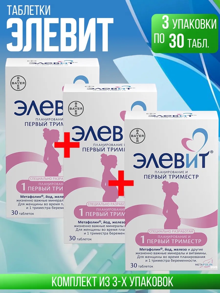 ЭЛЕВИТ Планирование и Первый триместр, 3 упаковки по 30 шт