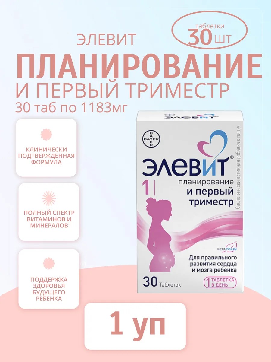 | Полное наименование товара | Элевит планирование и первый триместр 30 шт. таблетки массой 1155 мг |