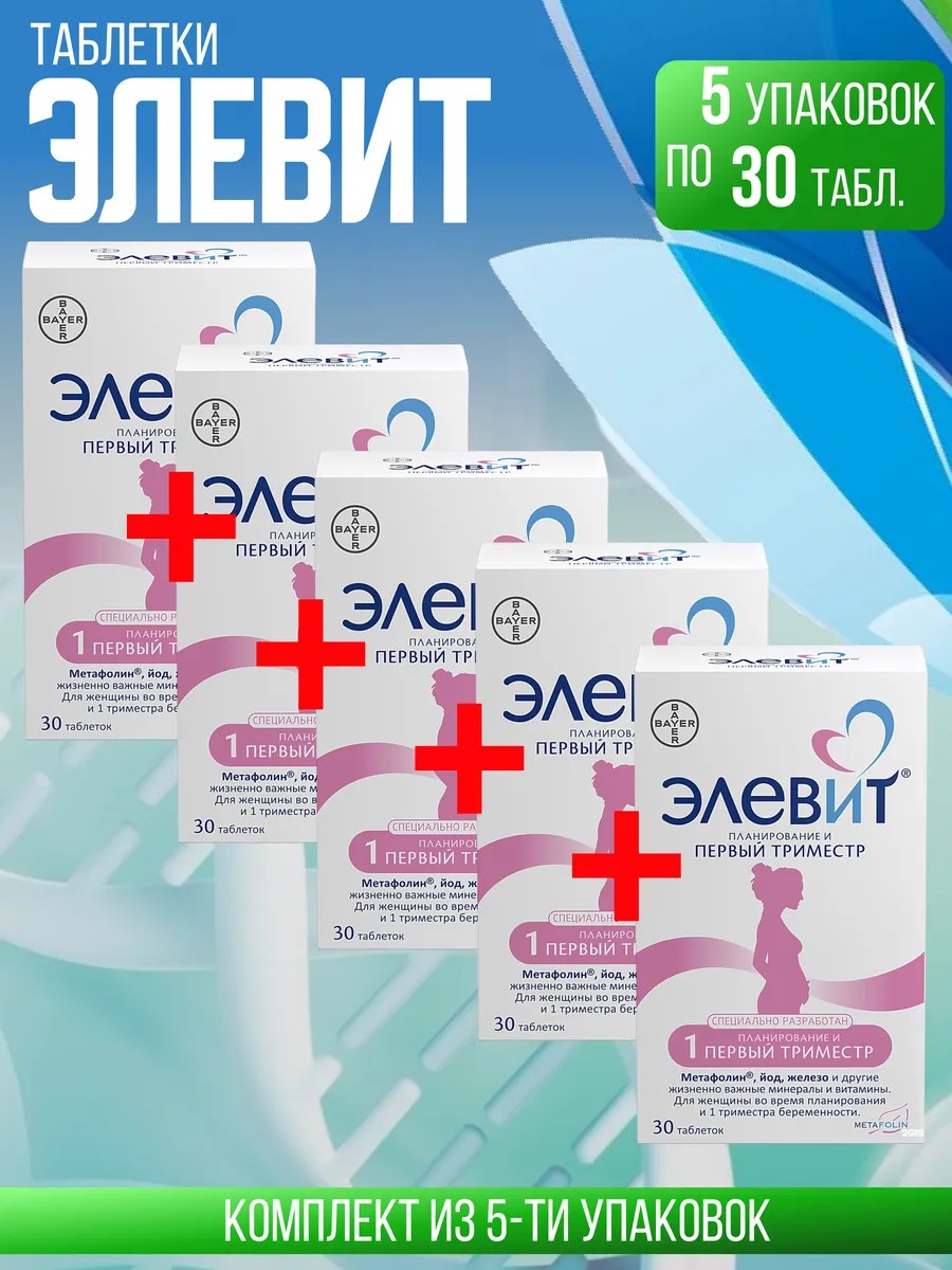 ЭЛЕВИТ Планирование и Первый триместр, 5 упаковок по 30 шт