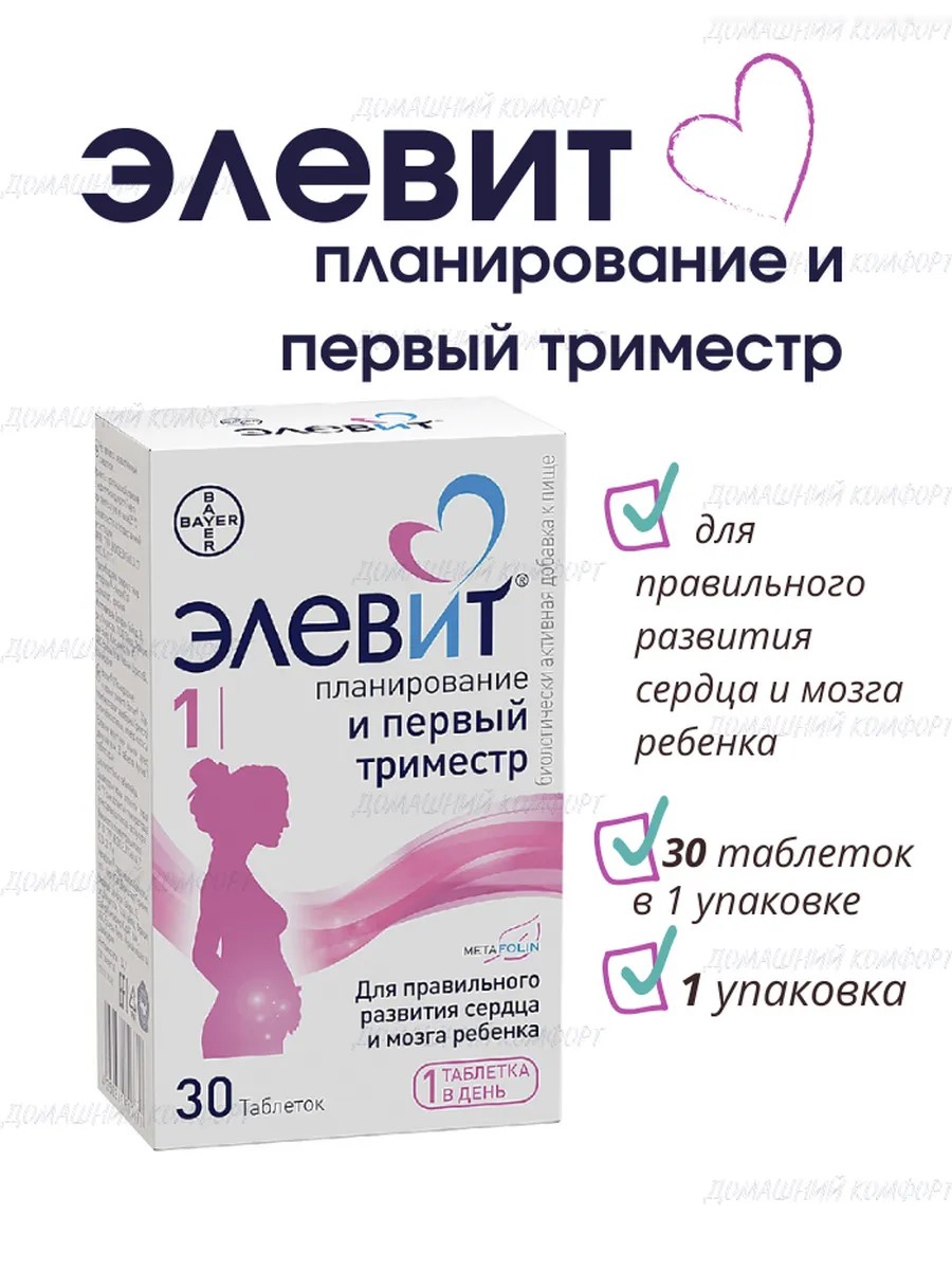ЭЛЕВИТ Таблетки Планирование и Первый триместр 30шт по 1155мг *1уп
