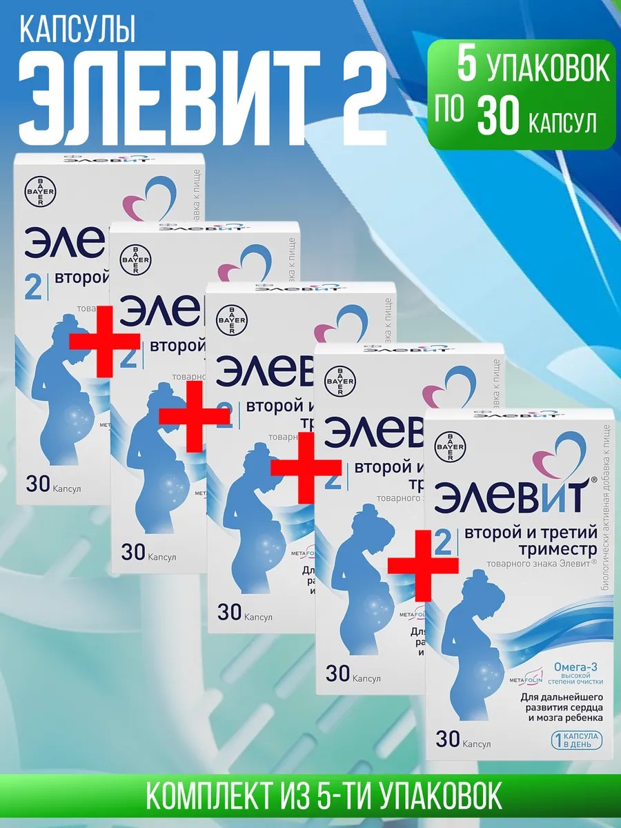 ЭЛЕВИТ второй и третий триместр, 5 упаковки по 30 капсул