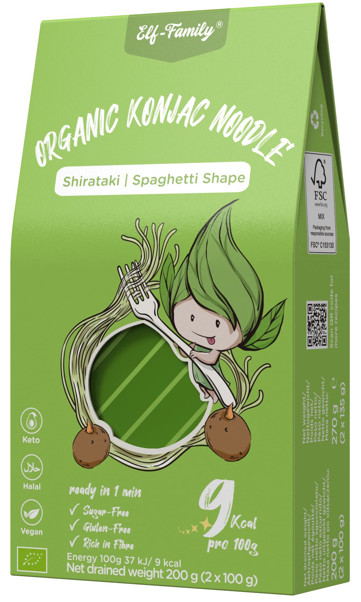 Elf-Family Keto-Diät für 20 Tage, 24 Portionen Bio Konjak Nudeln Ultra Low Carb, Shirataki Nudeln Vegan Glutenfrei-270g x24er Box(48 pack), Instant Pasta ohne kohlenhydrate/Kalorienarme -Spaghetti