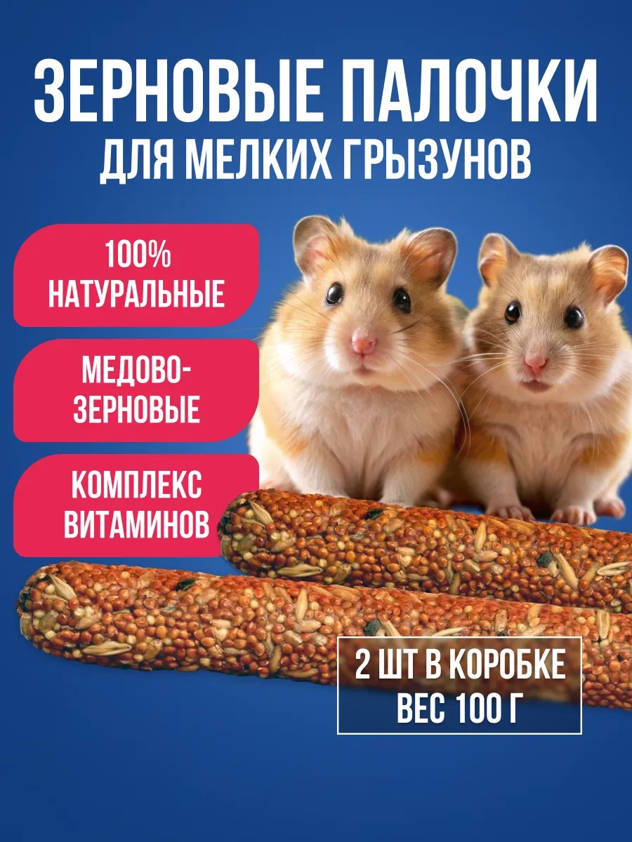 | Комплектация | Лакомство для крыс и хомяков 100г - зерновые палочки 2шт; упаковка |