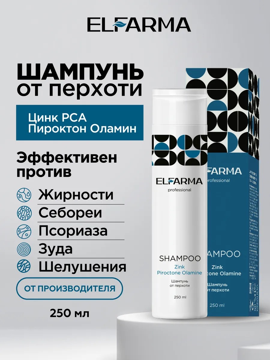ELFARMA Шампунь от перхоти с цинком и пироктон оламином, 250 мл